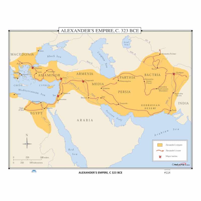 Alexander the Great’s Empire and Campaign Route Wall Map