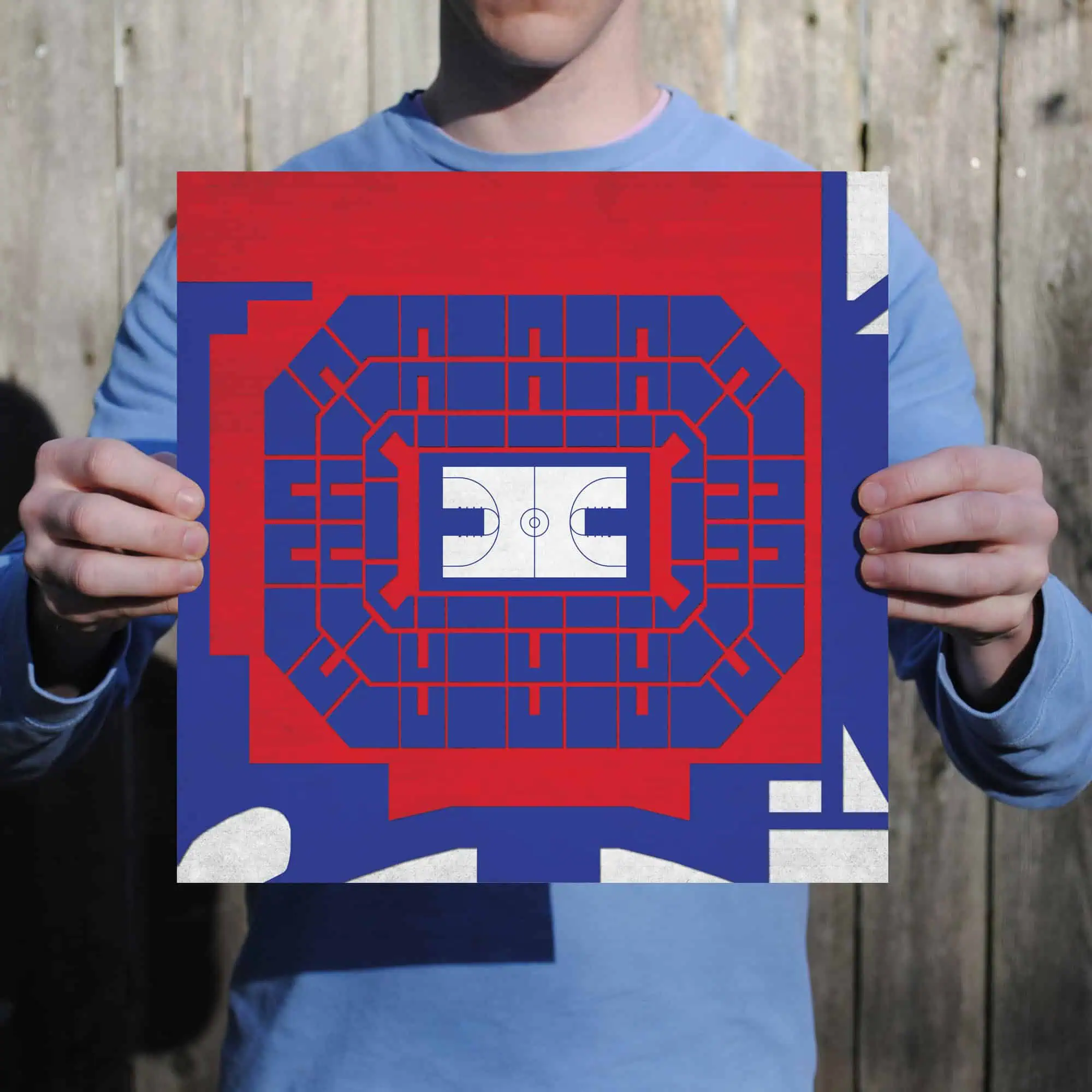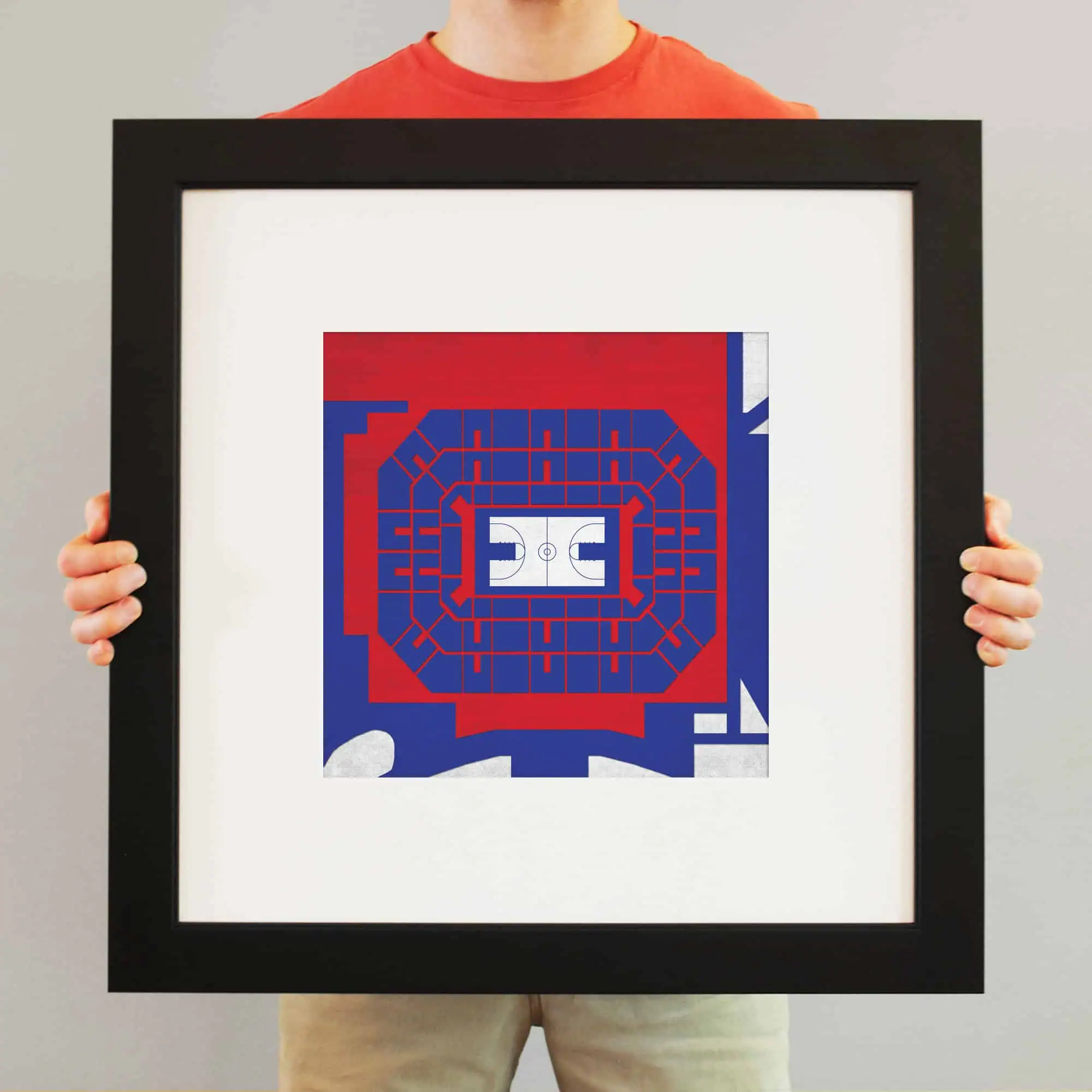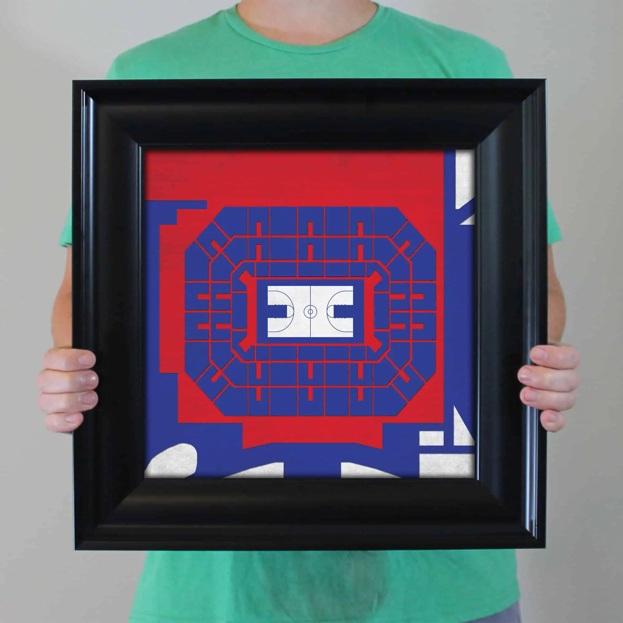 Map art print including the aerial view of Allen Fieldhouse located at the University of Kansas in Lawrence, Kansas.