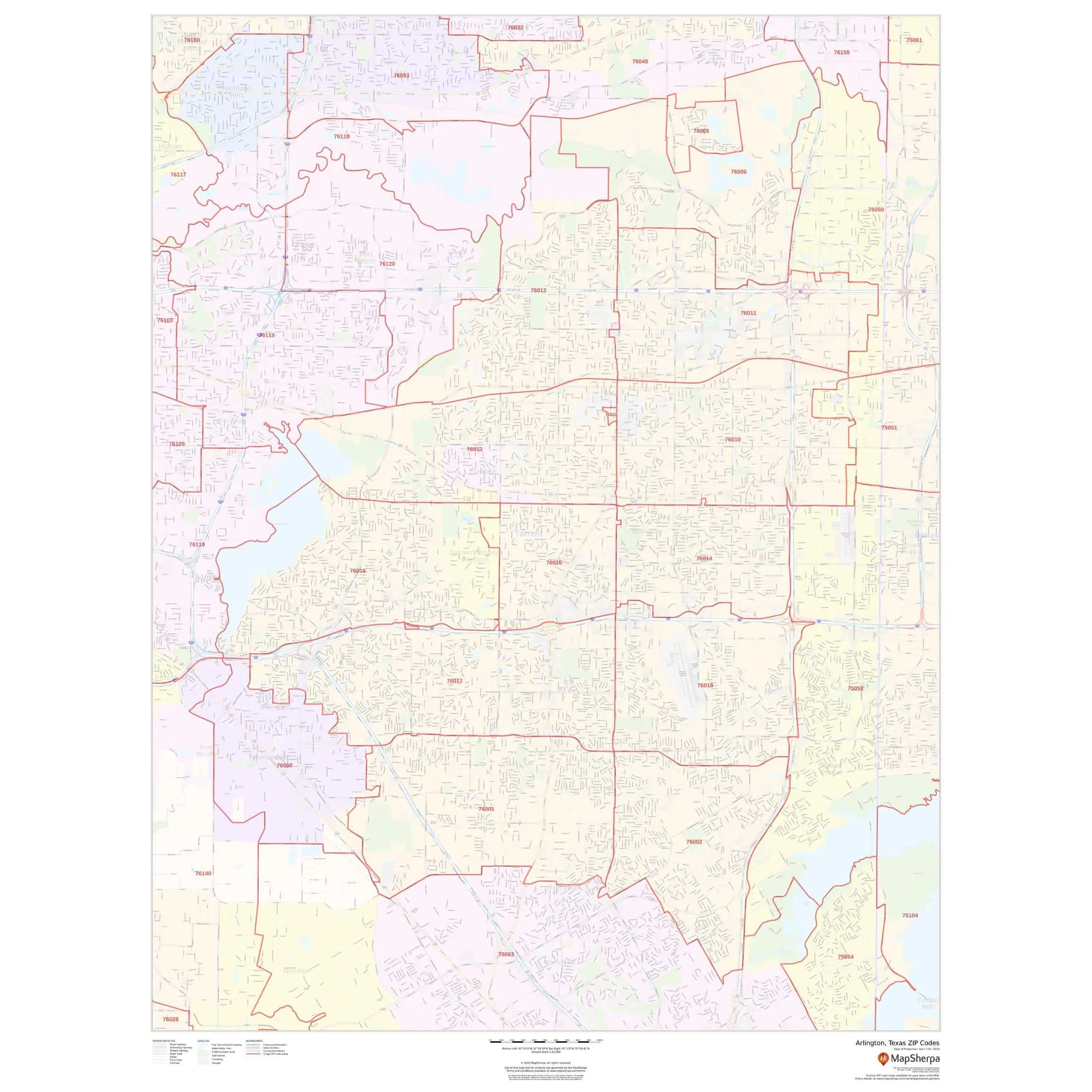 Arlington, Texas Zip Code Map by Map Sherpa