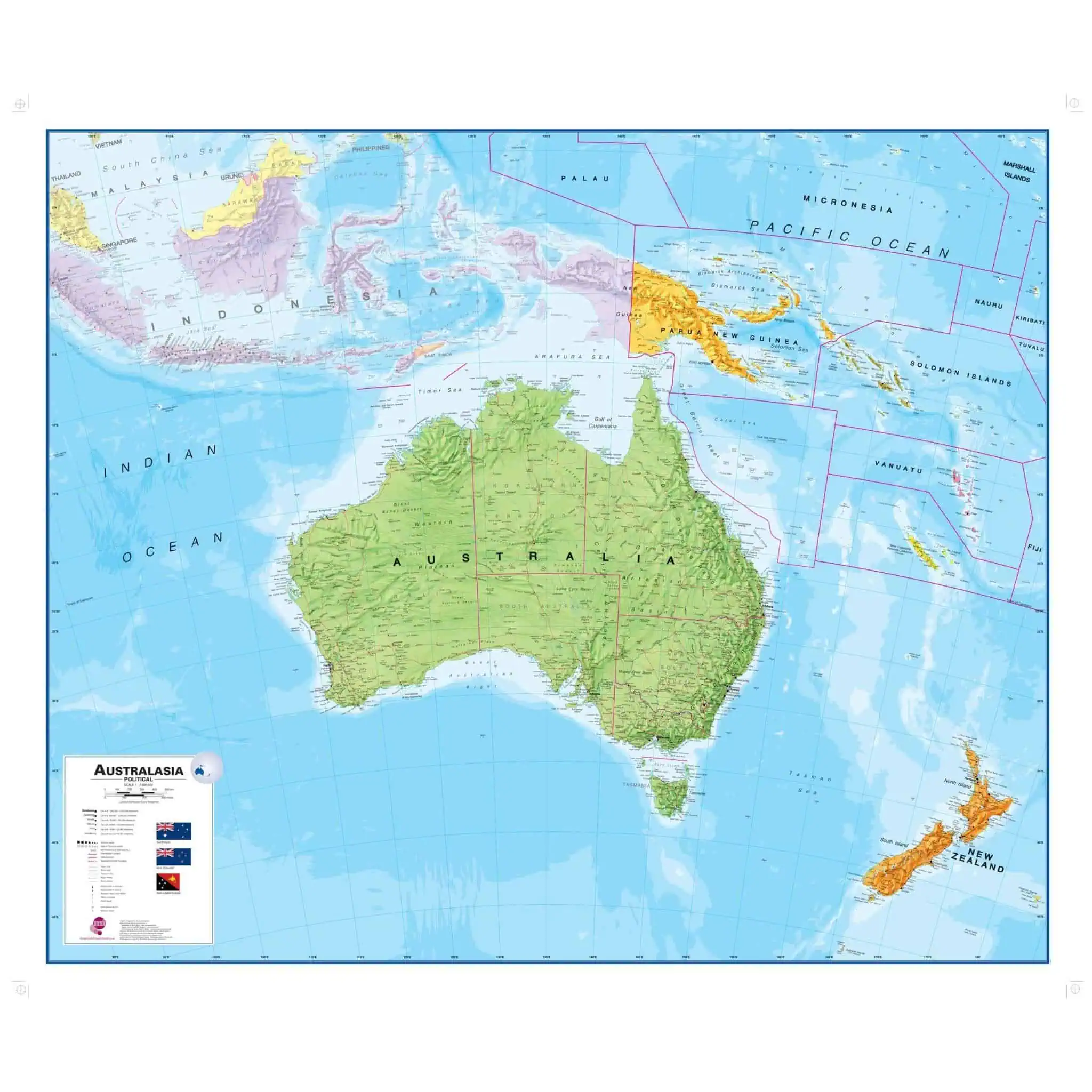 This political map of Australasia features countries marked in different colours, with international borders clearly shown. This political map of Australasia also contains city population detail, capital cities and all the major towns and cities in this continent.