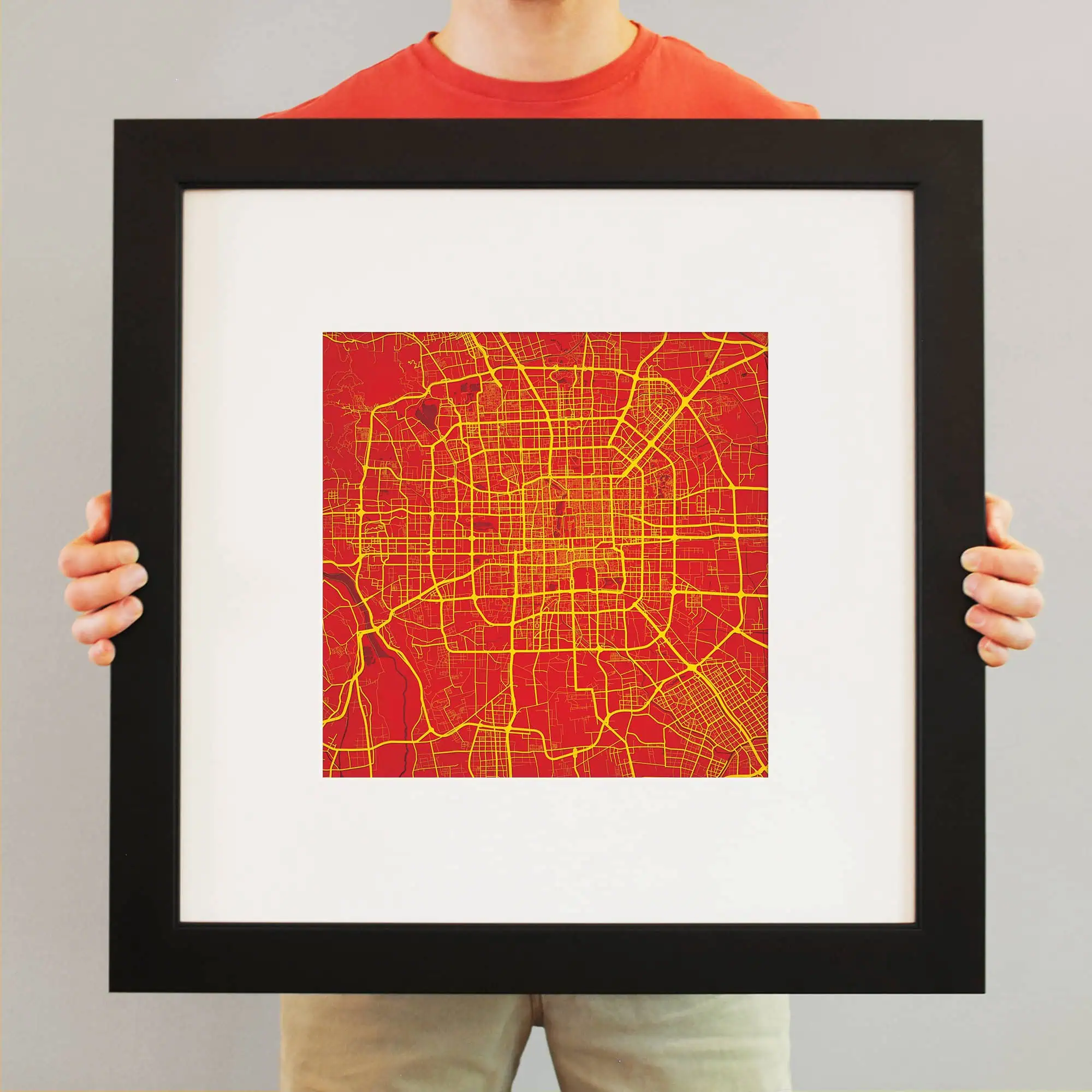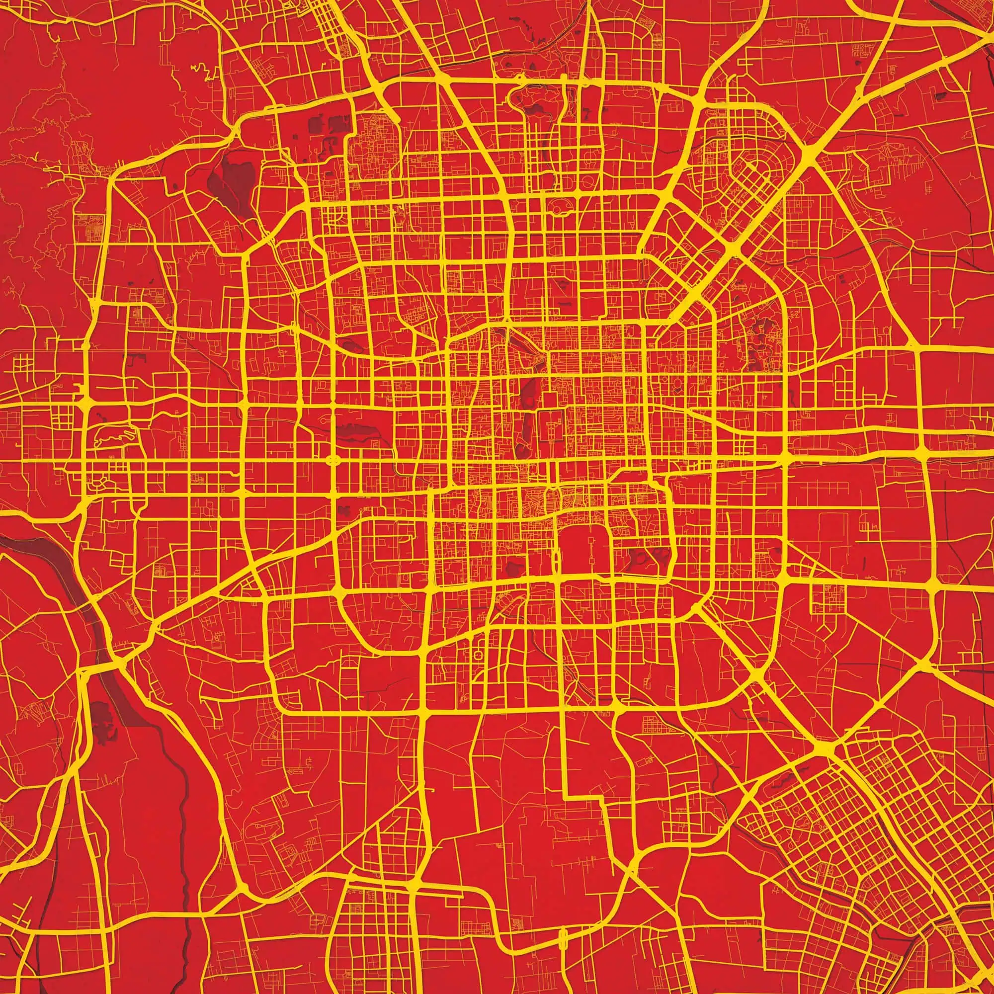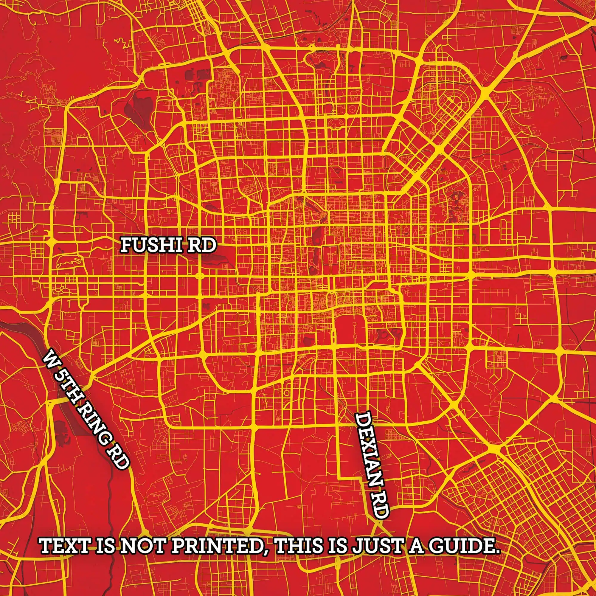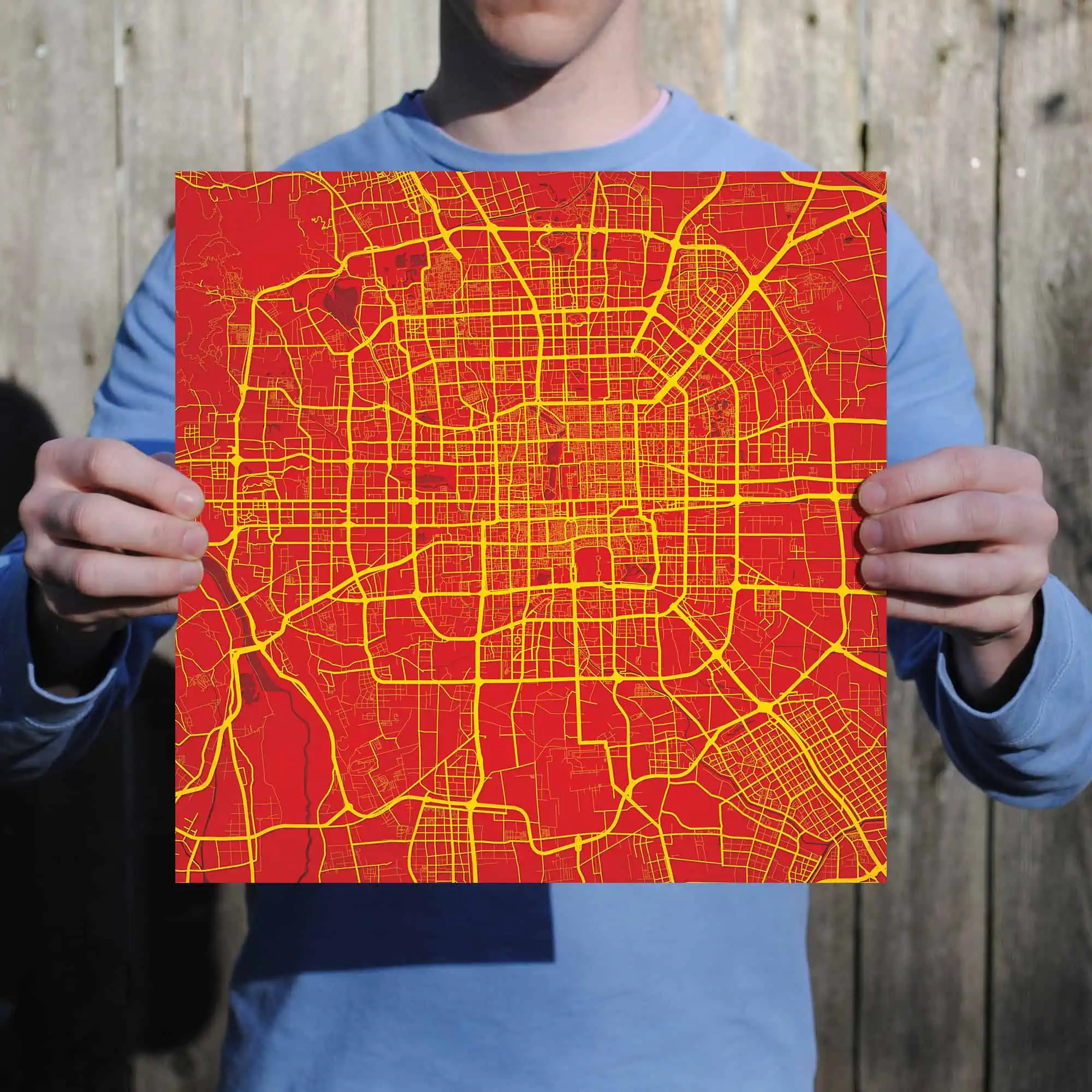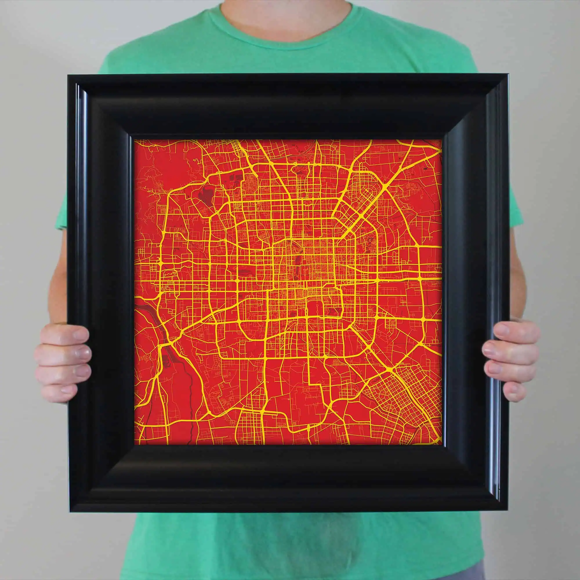 Colorful city map wall art featuring prominent street layouts and urban design, perfect for home or office decor, highlighting city navigation and geographic features.
