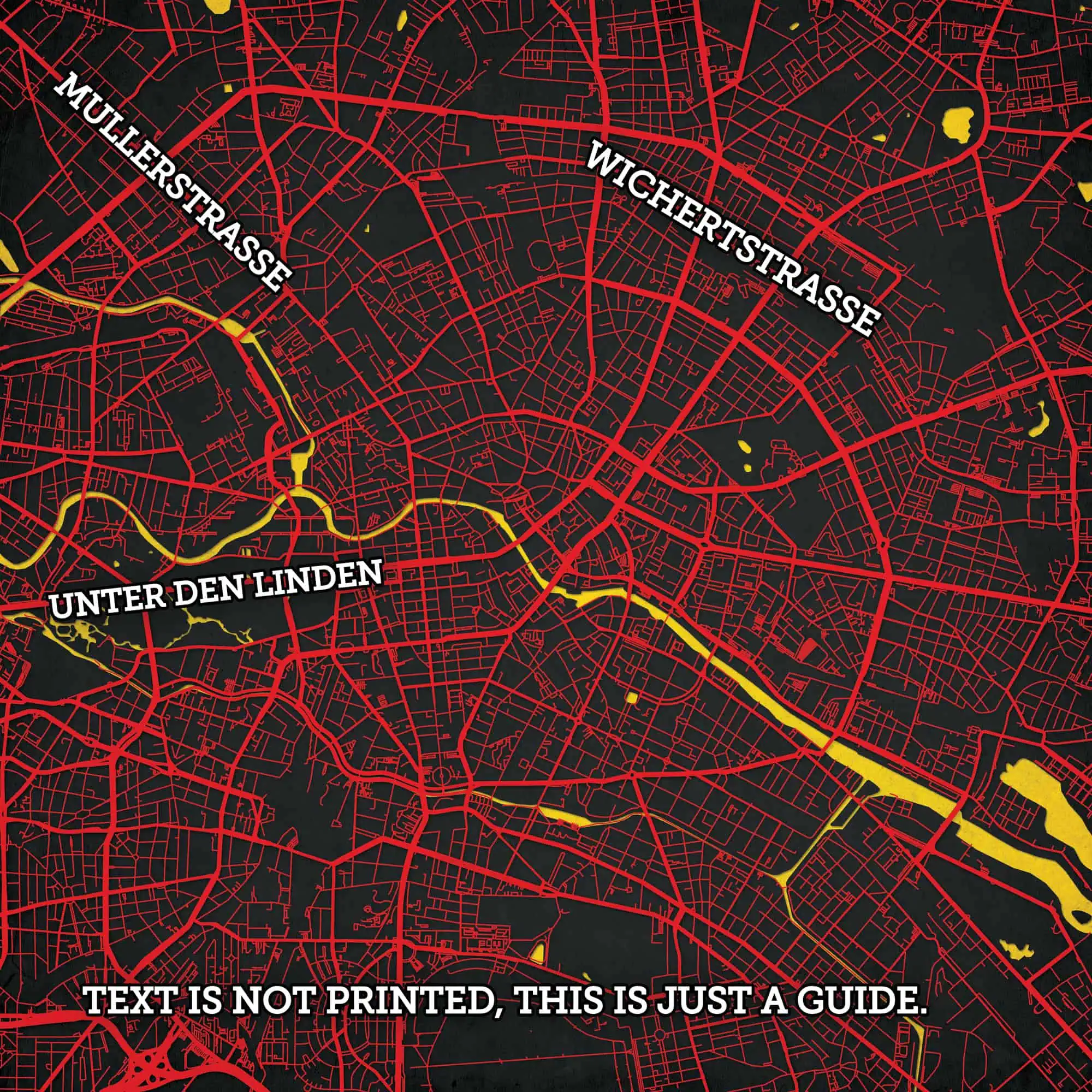 Map art print of Berlin, Germany.