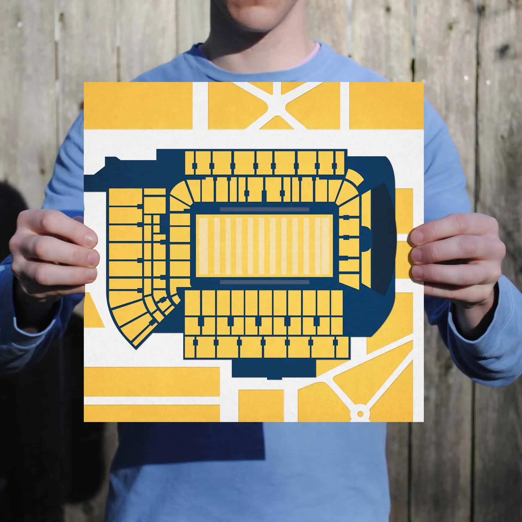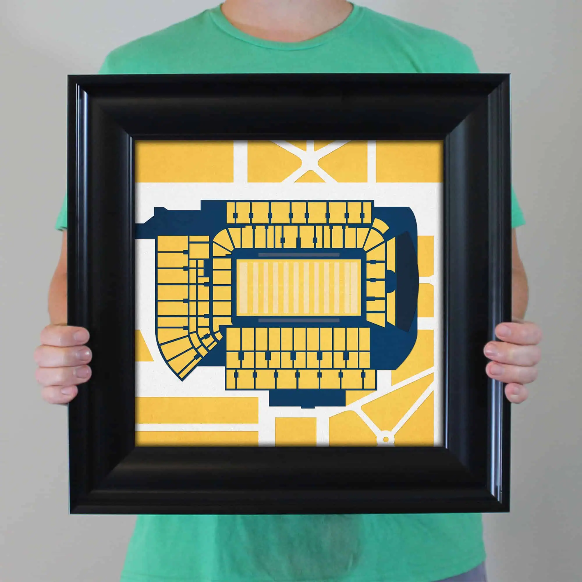 Map art print including the aerial view of Bobby Dodd Stadium located at the Georgia Institute of Technology in Atlanta, Georgia.
