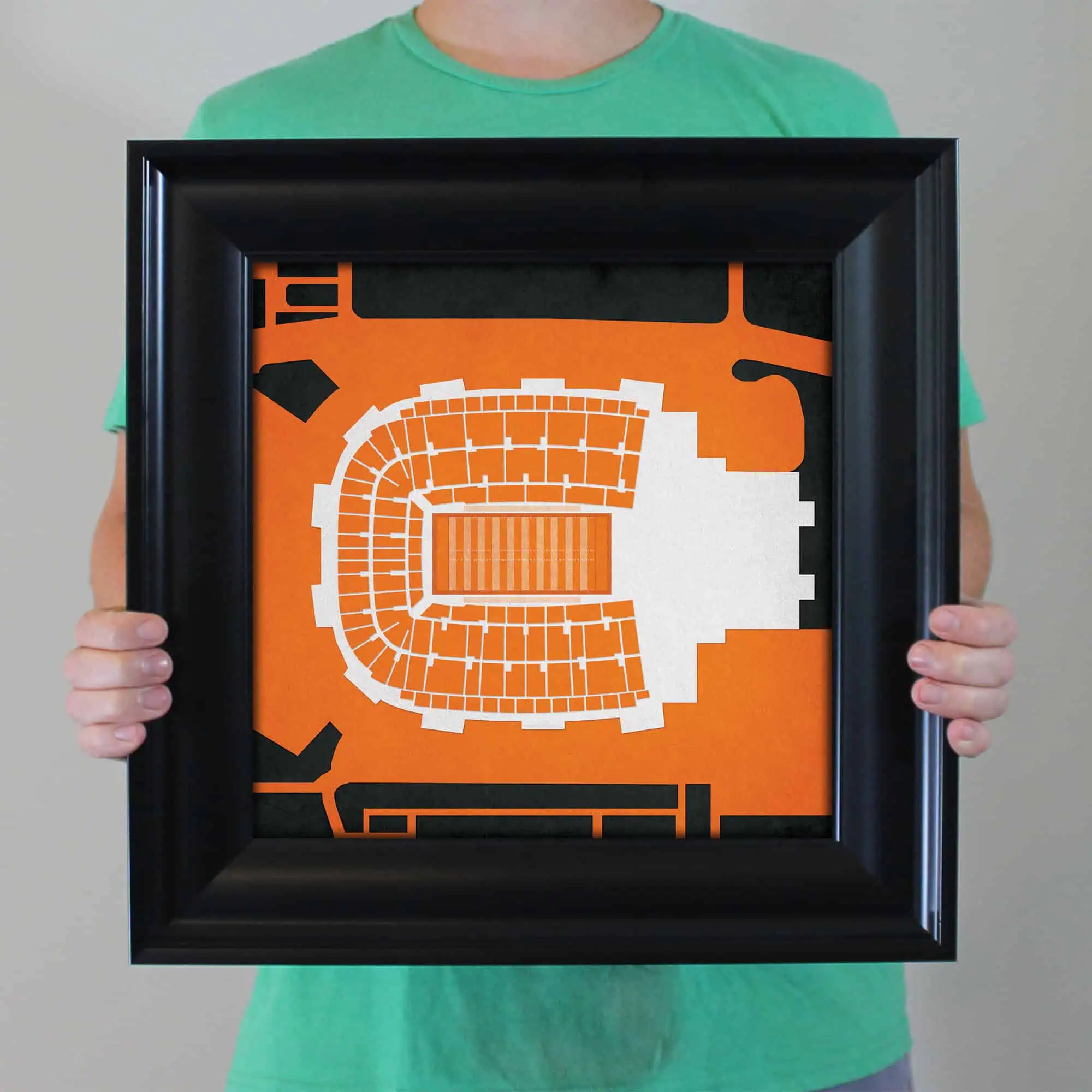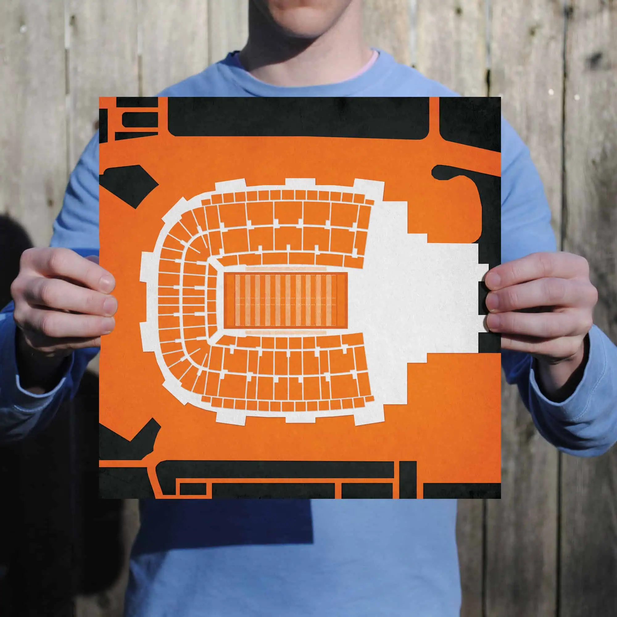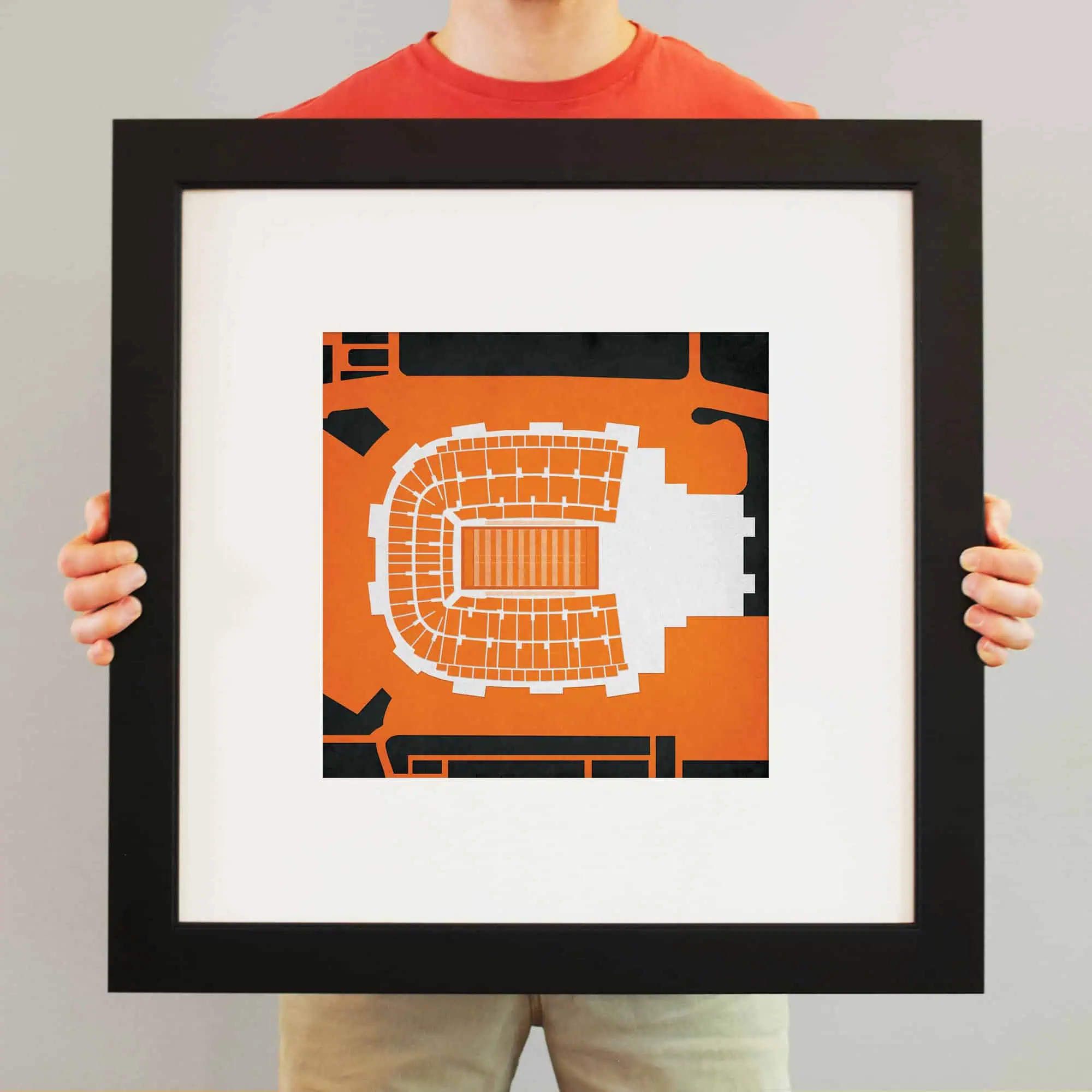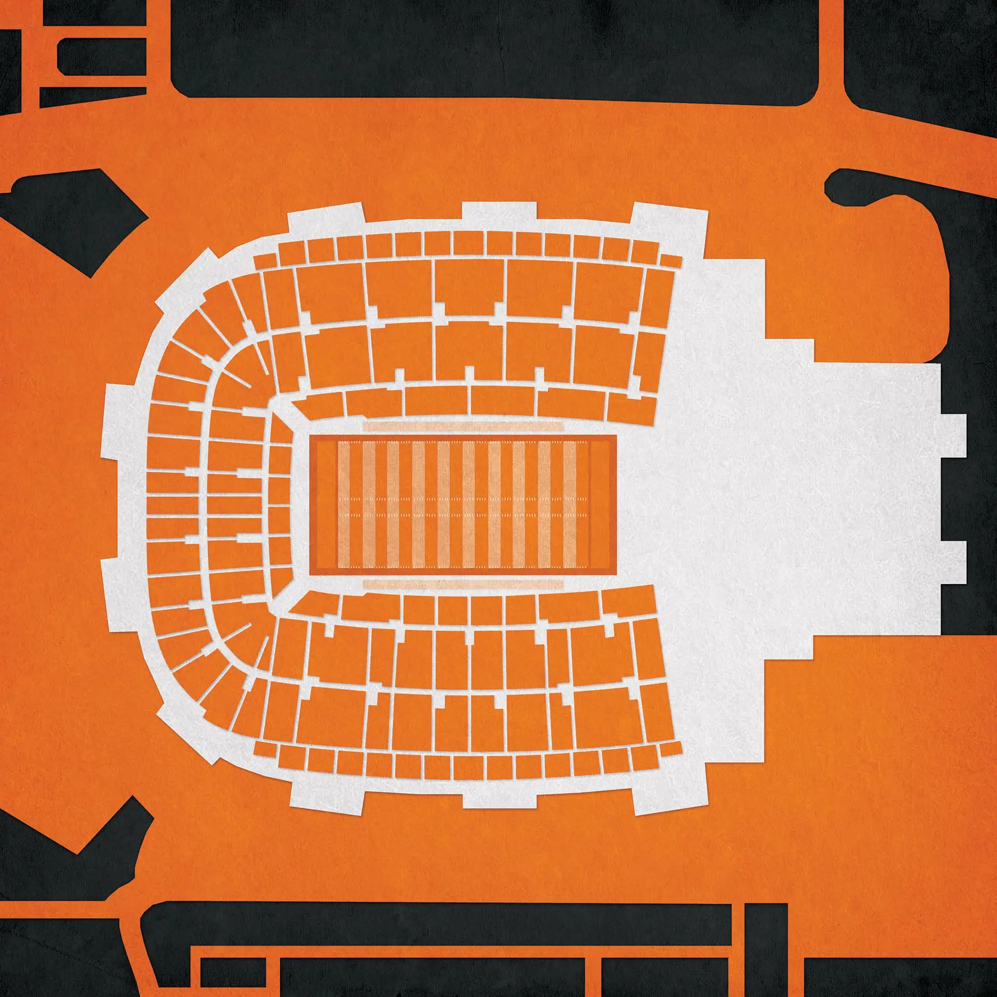 Map art print including the aerial view of Boone Pickens Stadium located at Oklahoma State University in Stillwater, Oklahoma.