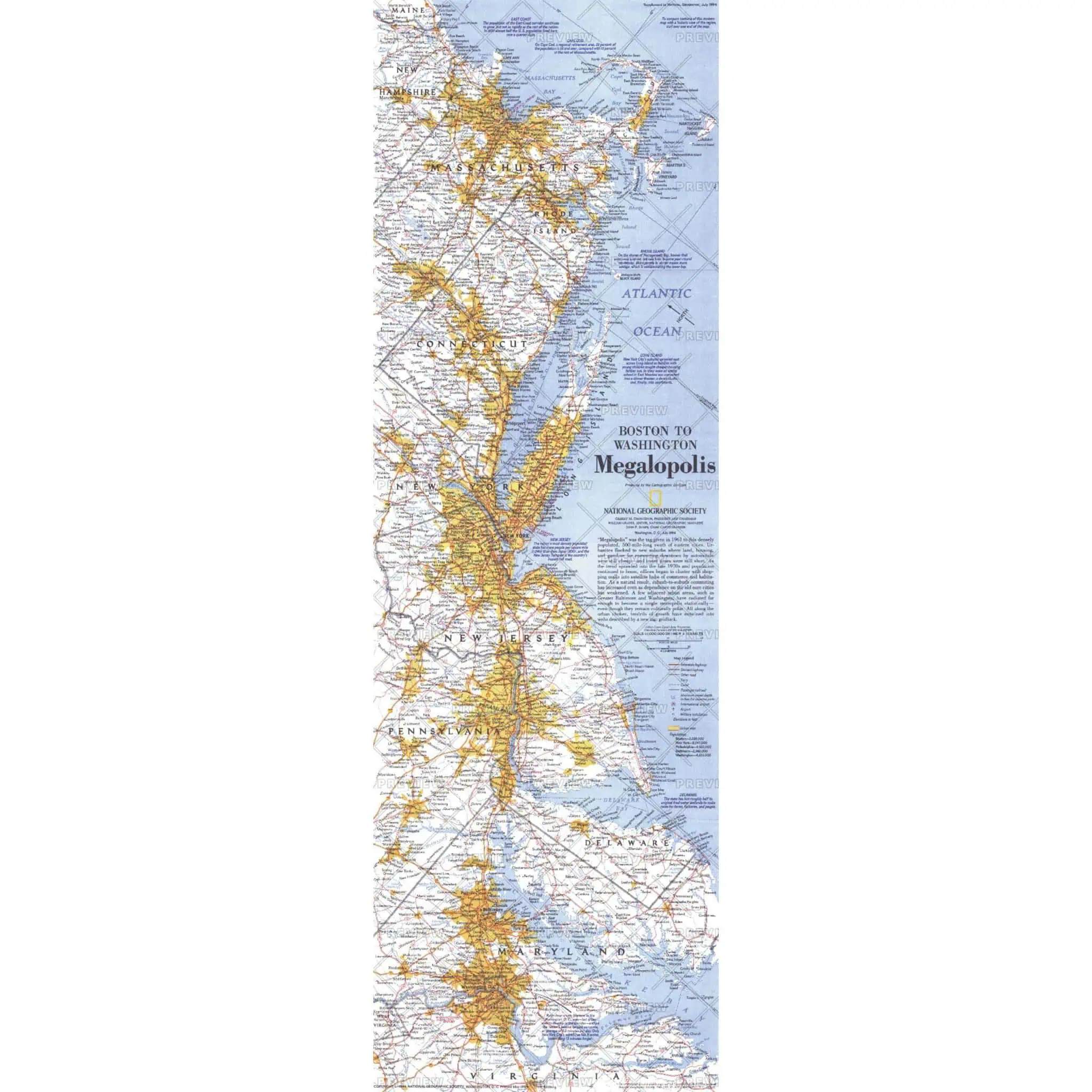 Boston to Washington Megalopolis Map (1994) by National Geographic