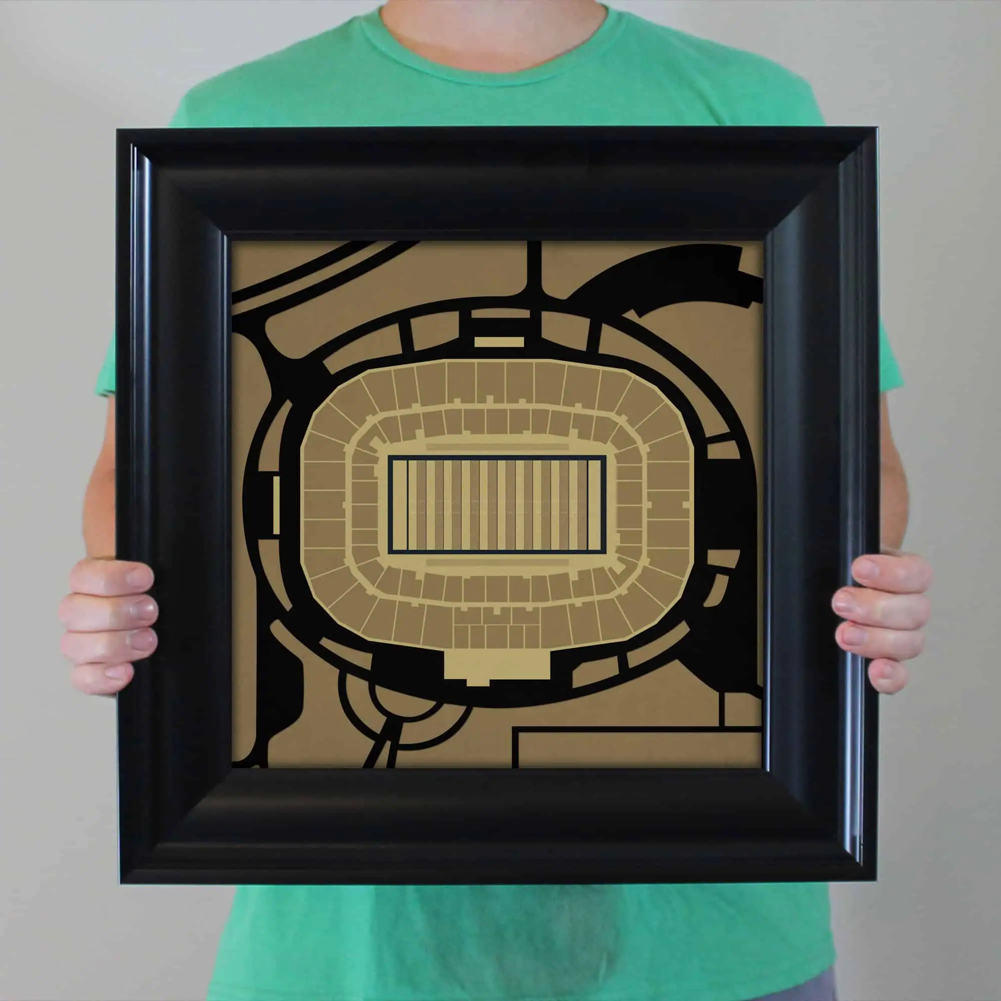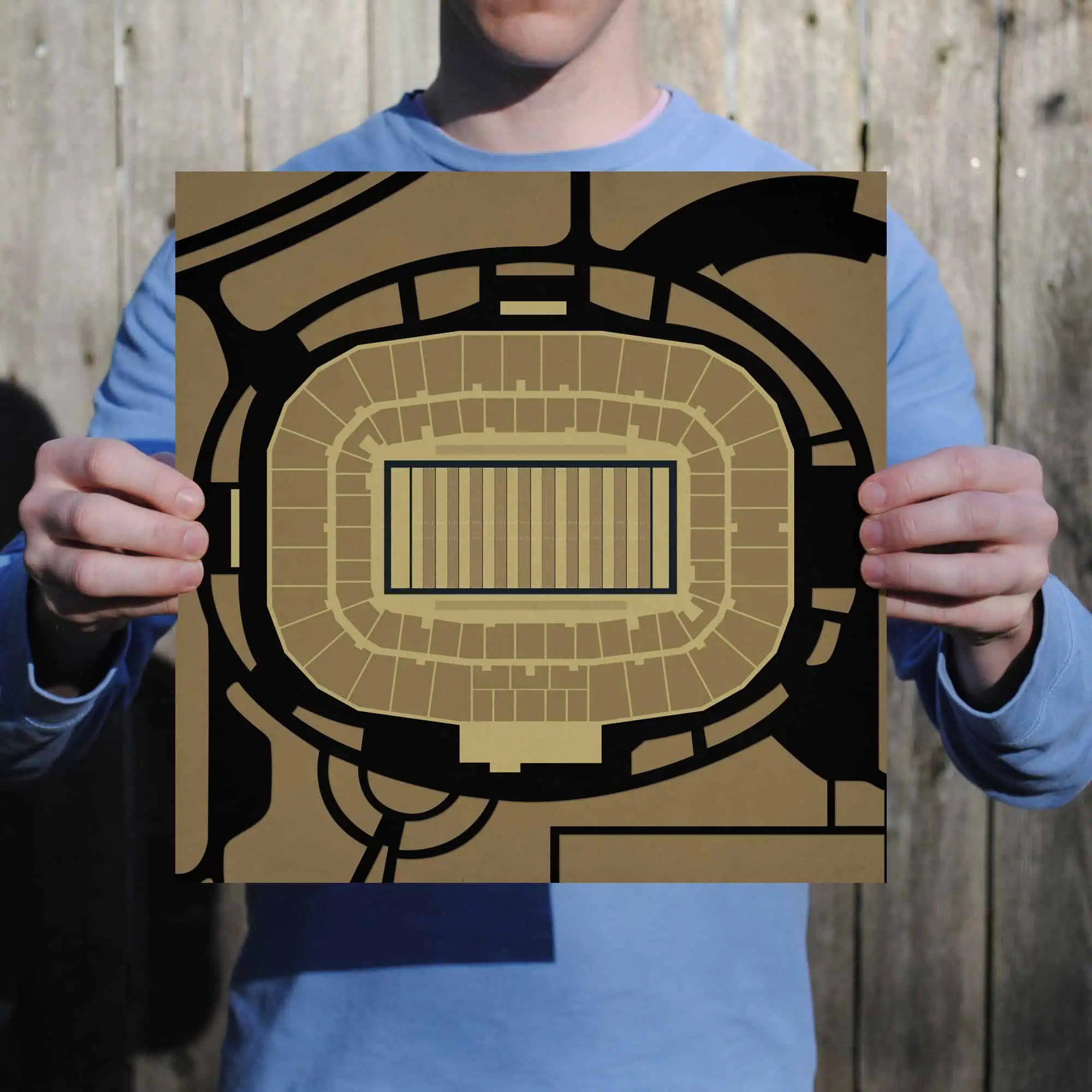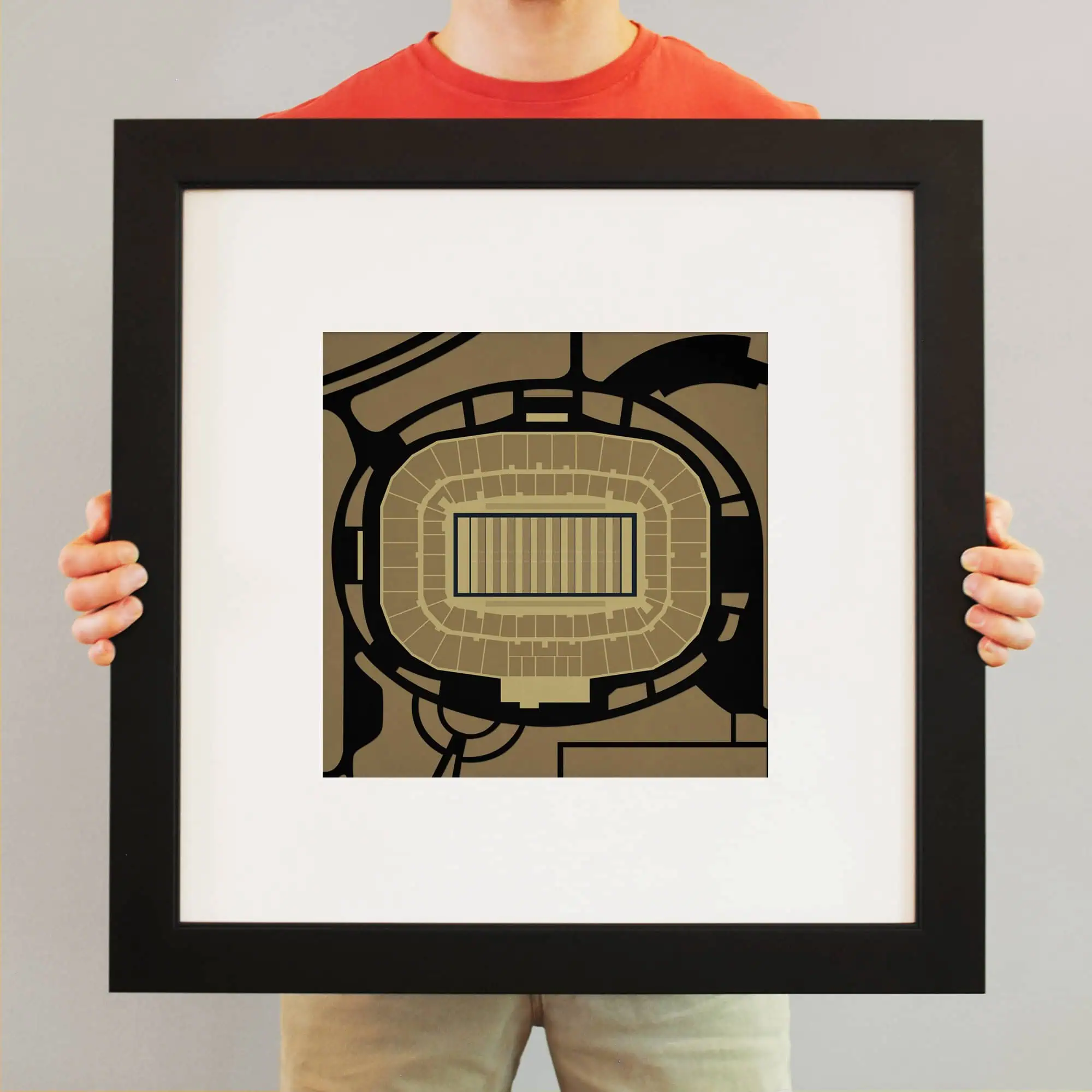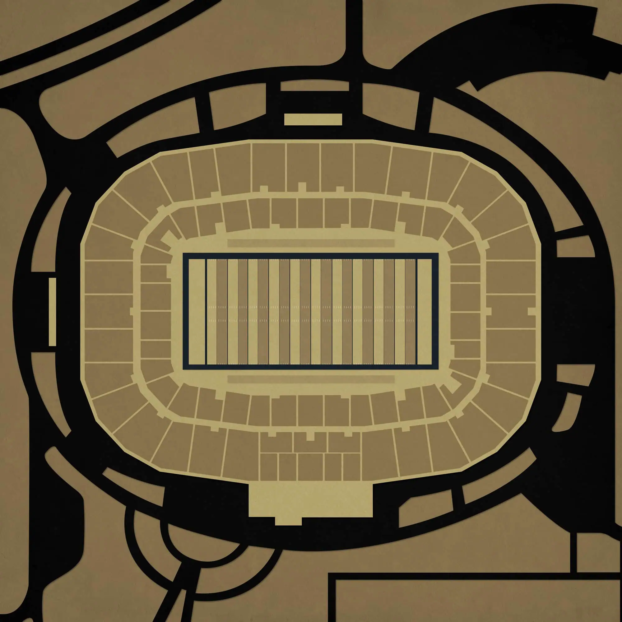Map art print including the aerial view of Bright House Networks Stadium located at the University of Central Florida in Orlando, Florida.