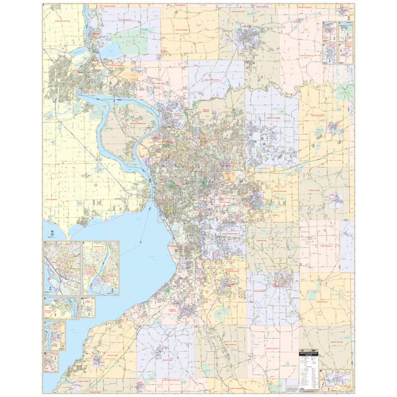 The Buffalo & Erie Co, NY Wall Map, with adjacent areas, provides complete street detail and covers the following boundaries: