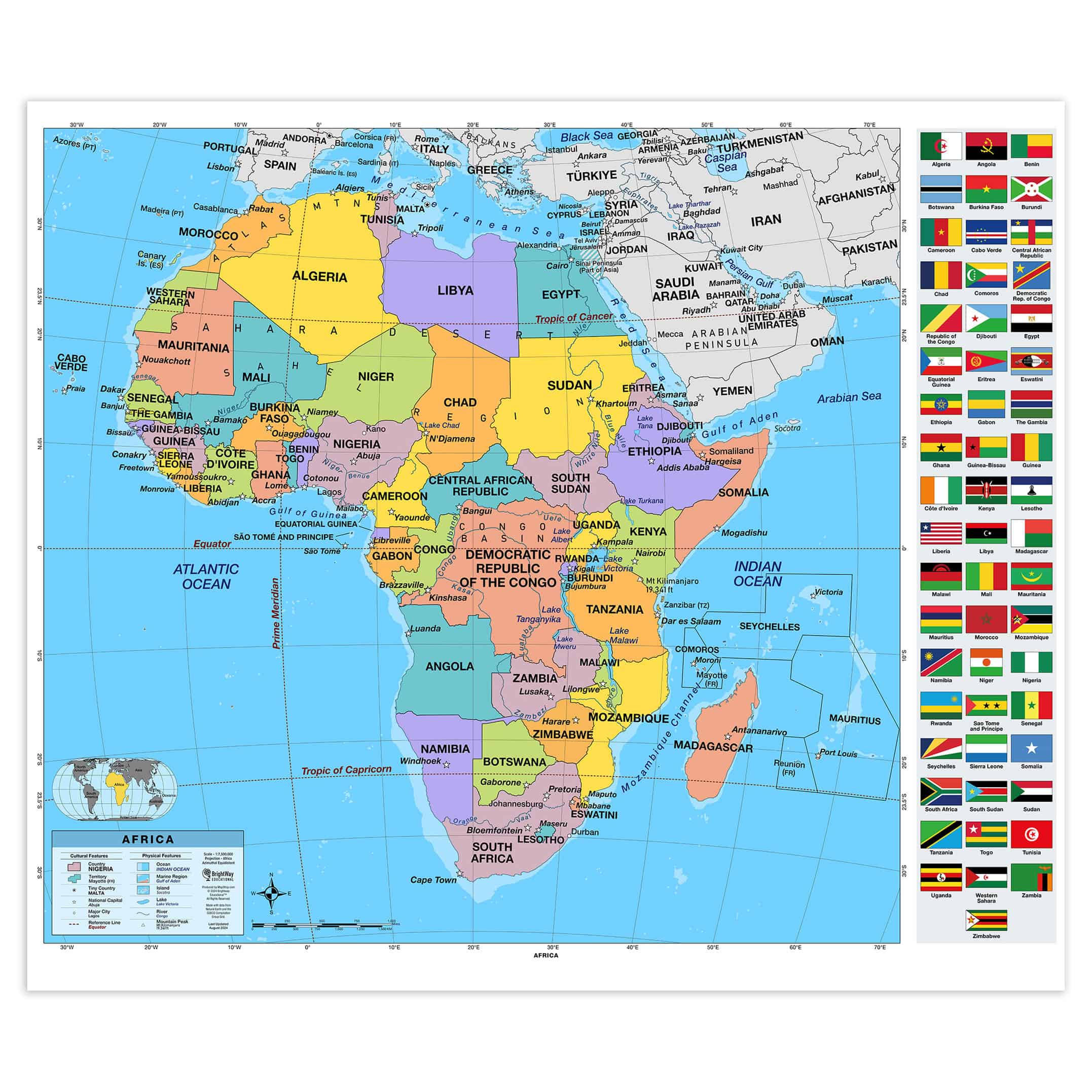 - Flags: Choose the flags variation to include flags of the countries pictured on the map for added educational value.