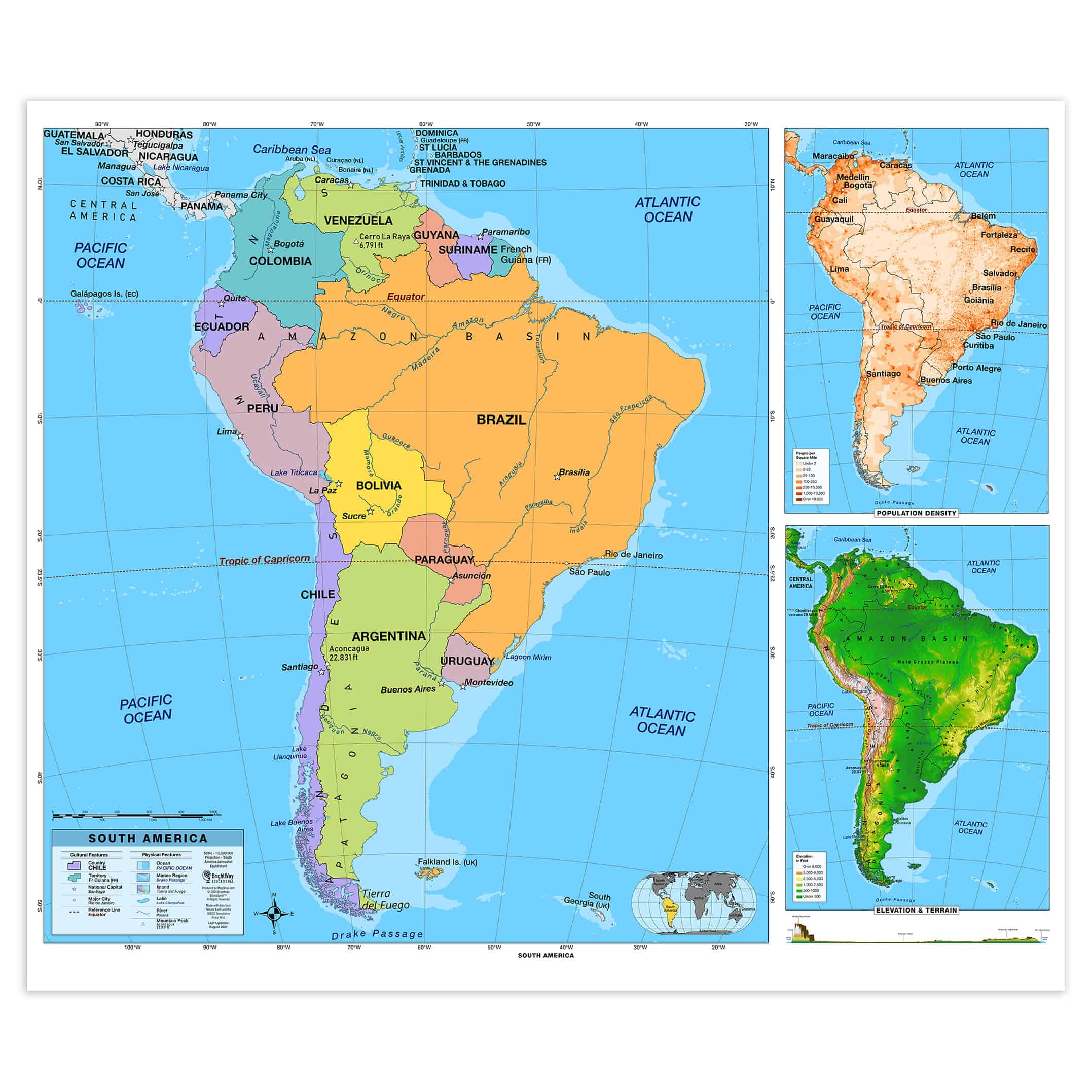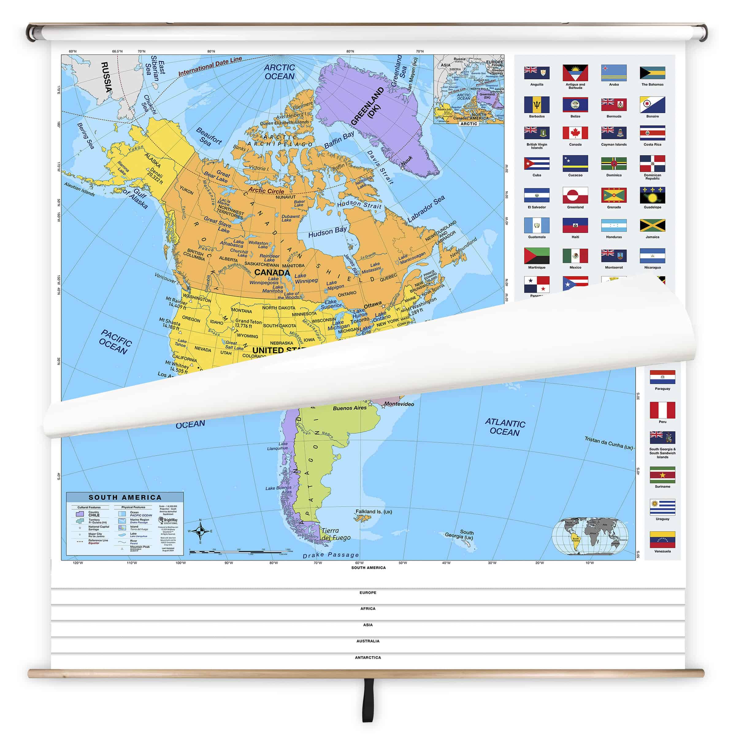Bring geography to life with the 7 Continent Primary Classroom Pull Down Map Set by BrightWay Educational. Designed for grades 1-5, this vibrant set features detailed maps of North America, South America, Europe, Africa, Asia, Australia/Oceania & Antarctica, with easy-to-read fonts and bright colors for clear differentiation of countries, territories, and physical features. These maps were developed alongside teachers to ensure the maps enhance classroom learning and help young learners explore the diverse landscapes and cultures of all continents. These maps are constantly being updated, making the maps the most up-to-date on the market. This map set is ideal for fostering foundational geography skills in an engaging and visual way.