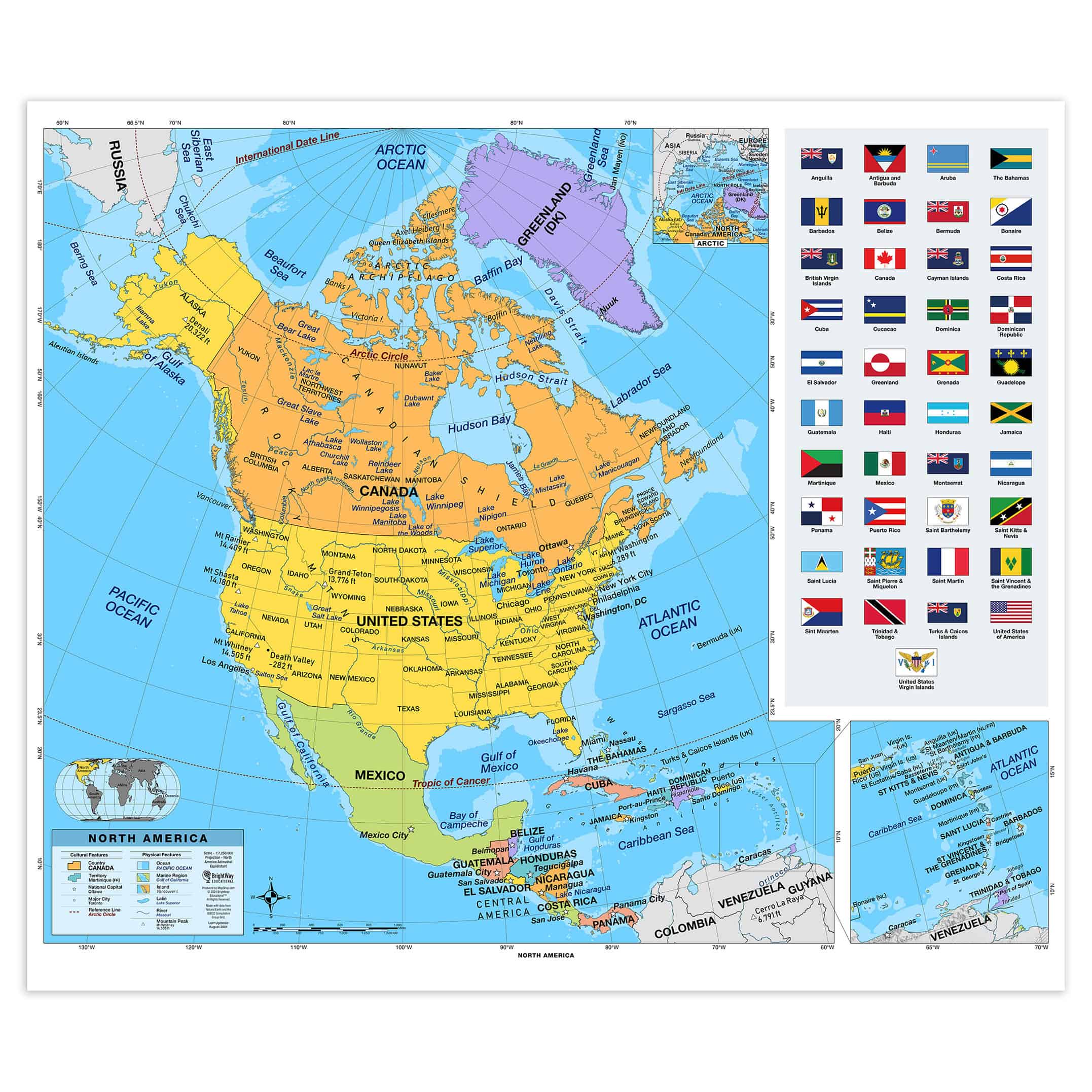 - The North America map includes detailed insets of both the Arctic and the Caribbean, providing students with a clearer understanding of these important regions in relation to the continent.