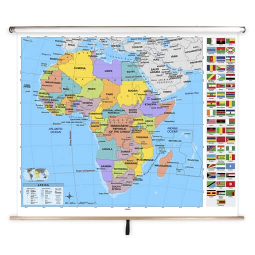Ideal for use in classrooms, homeschooling environments, and educational spaces, this Africa Primary Classroom Pull Down Map by BrightWay Educational is an essential tool for young learners to explore and understand the world around them.
