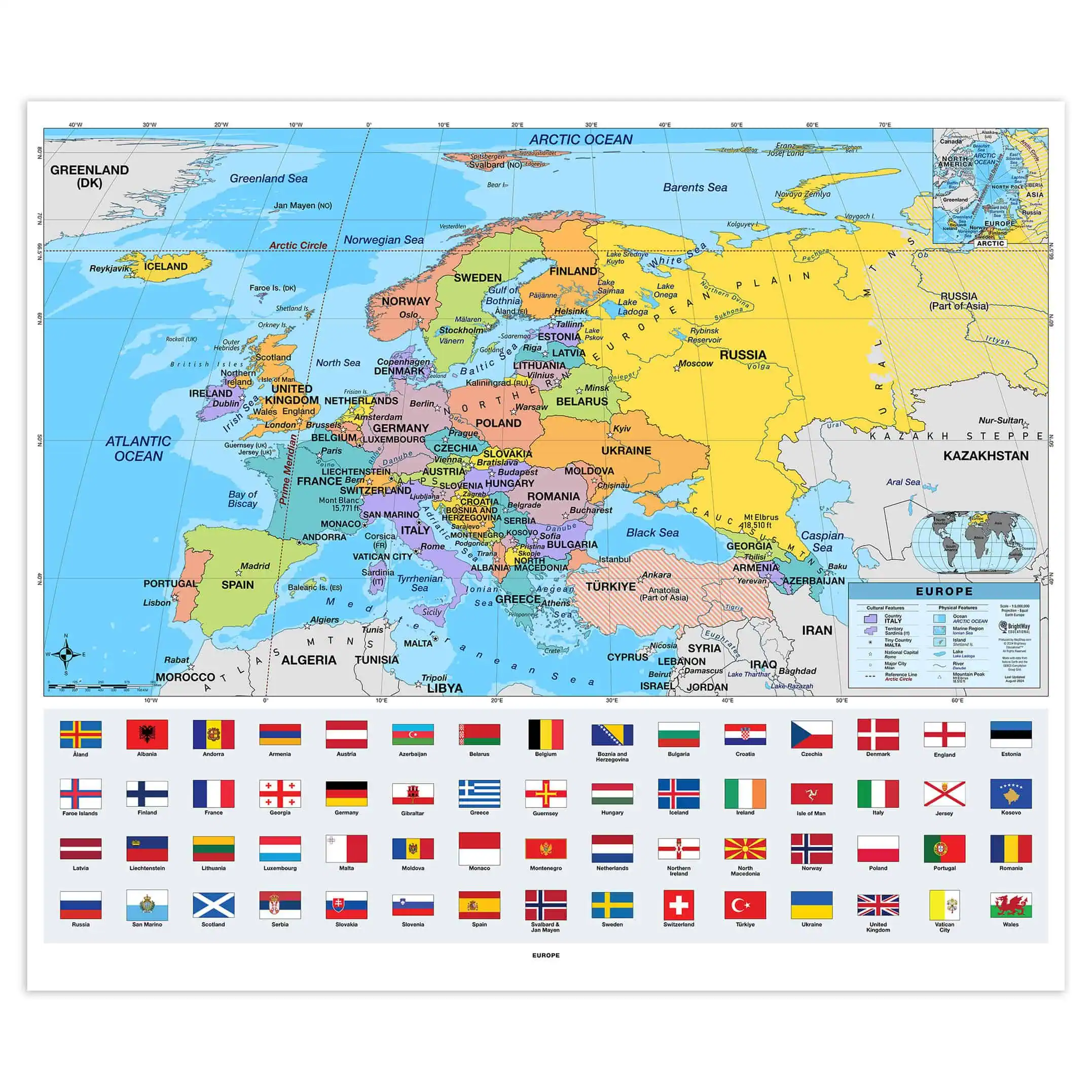 - Inset Detail: Includes a detailed inset of the Arctic, enhancing students’ understanding of the northern polar region in relation to the continent.