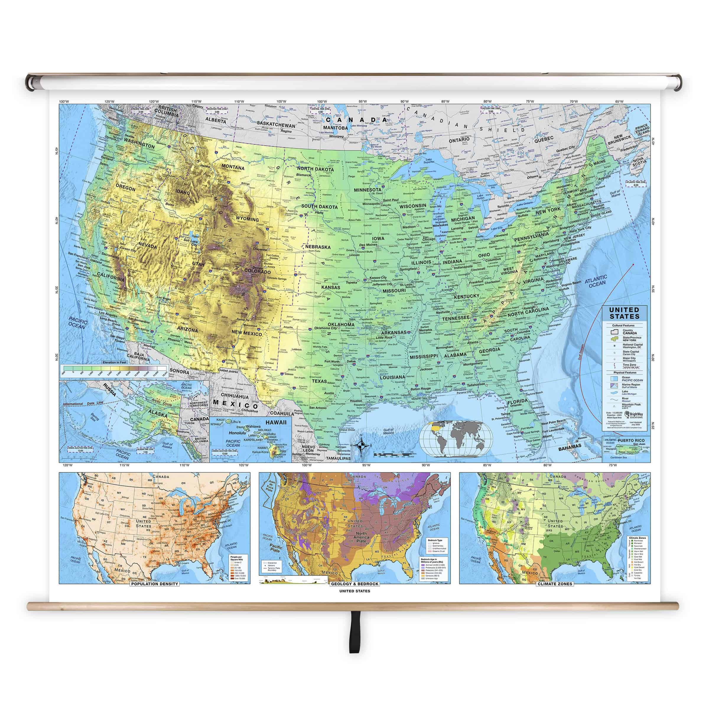 United States Advanced Physical Classroom Pull Down Map w/ Backboard by BrightWay Educational