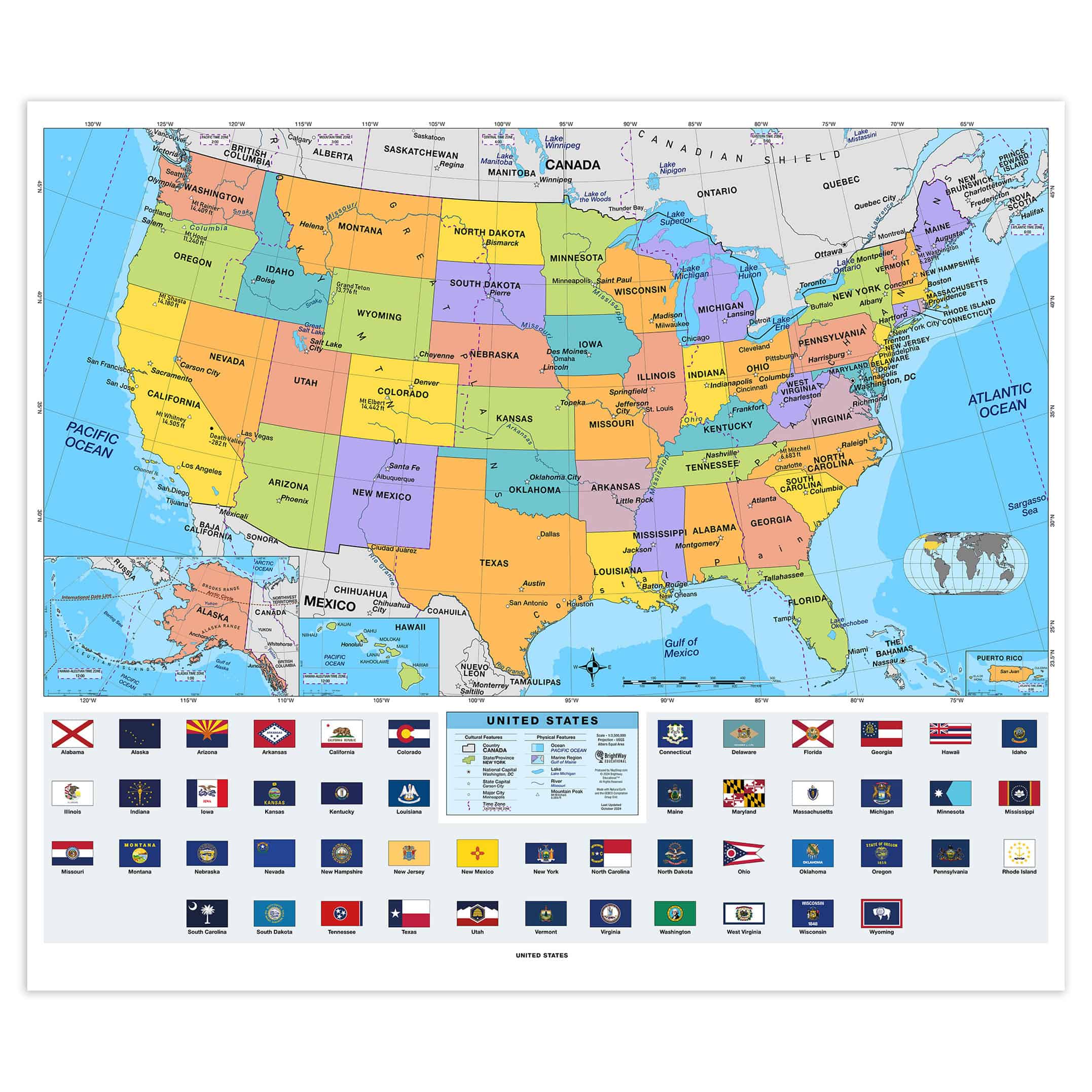 - Inset Detail: Features detailed insets of Alaska, Hawaii, and Puerto Rico provide a complete view of national geography.