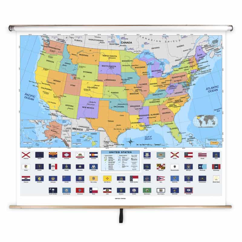 Ideal for use in classrooms, homeschooling environments, and educational spaces, this United States Primary Classroom Pull Down Map by BrightWay Educational is an essential tool for young learners to explore and understand the world around them.