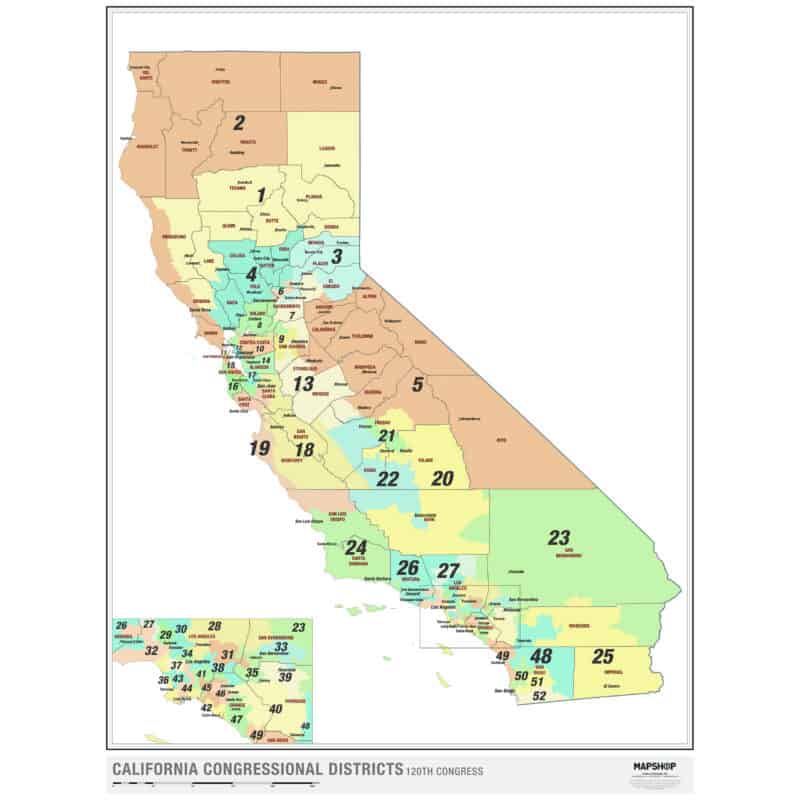 All 52 California congressional districts. Drawn in-house, printed with the most current 2026 boundaries available.