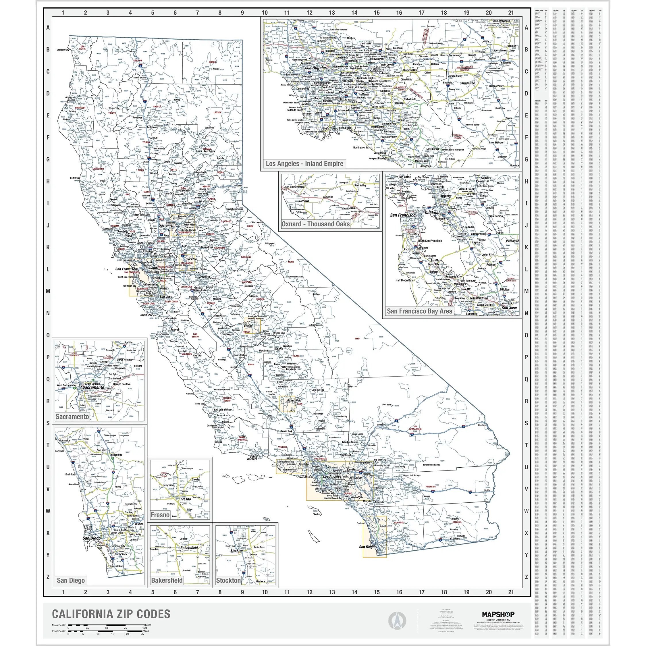The Map Shop’s goal is simple. We want to inspire adventure, connect customers to past memories, and offer a better understanding of our country. We developed this California Zip Code Wall Map in-house so we’d have complete control over the cartography and design of the map. The result is a map that is as much fine art as it is a geographic reference. With a simple white background and a complete County & City index, you can make your plans faster and easier than ever before! Our map even includes: