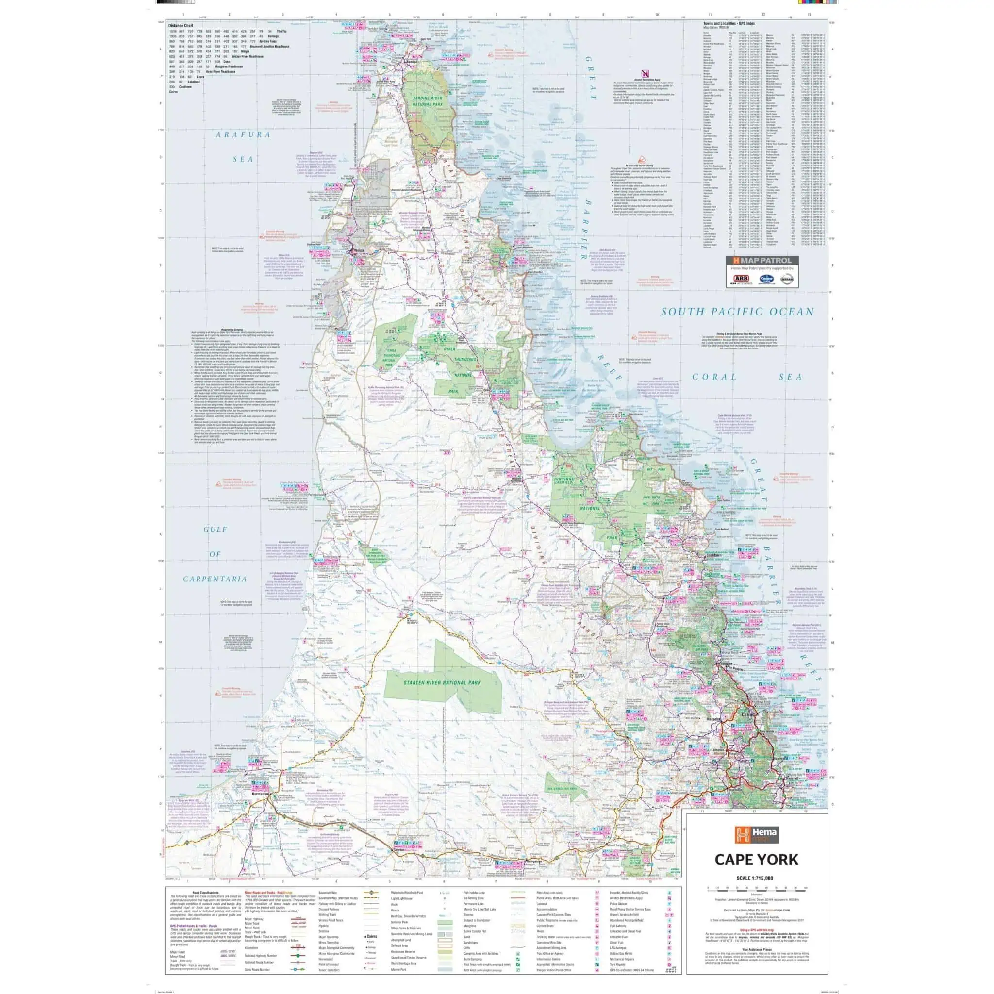 A large map of Cape York that features 4WD tracks, touring information, points of interest, facilities and distances, making it the perfect trip planning tool and reference map.Â