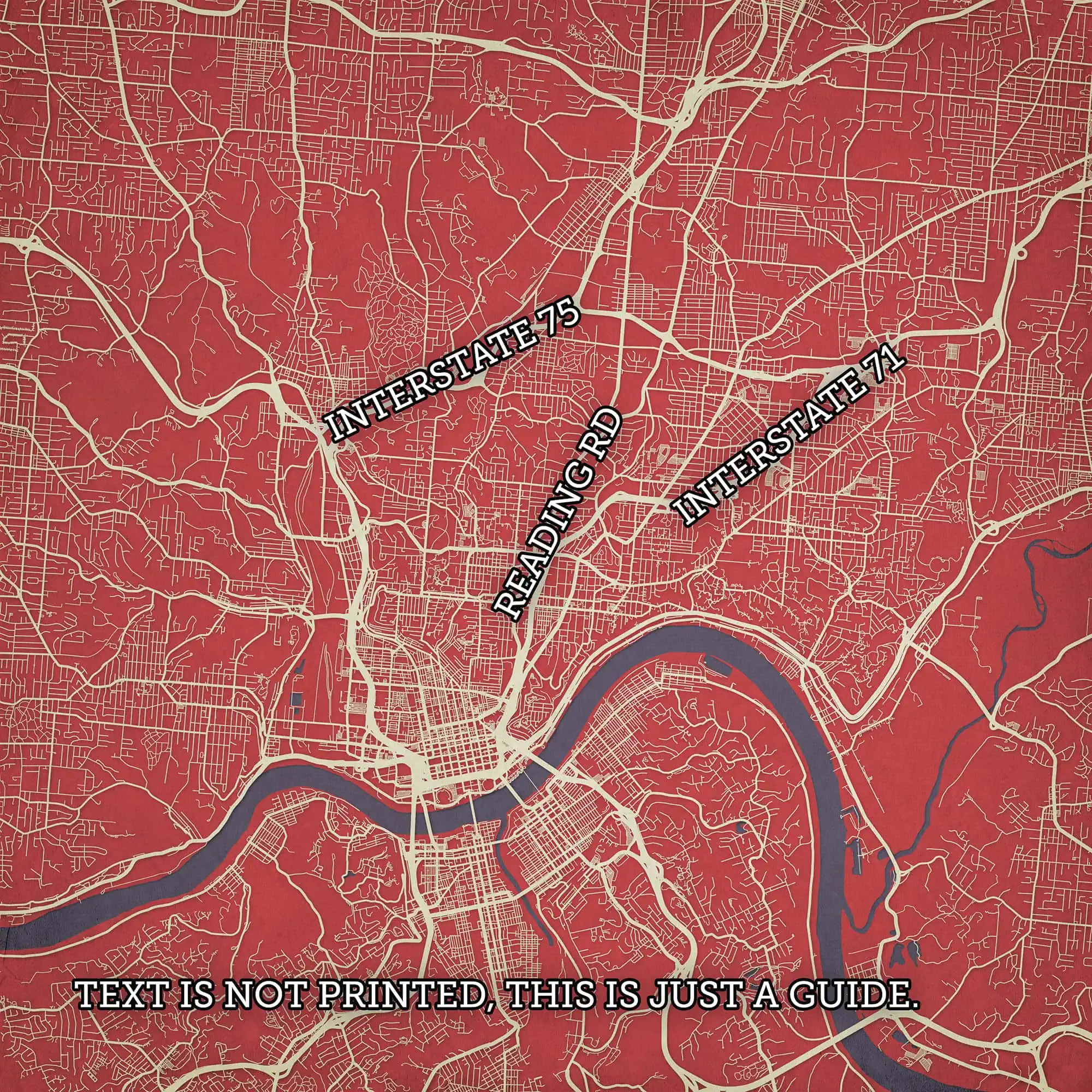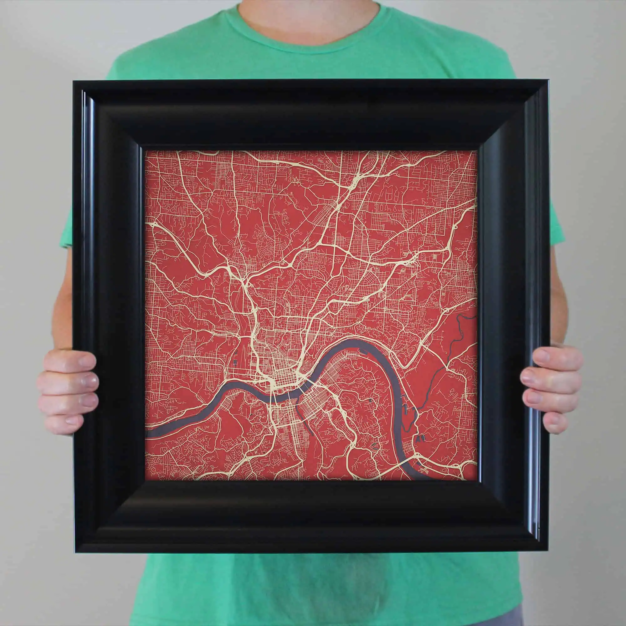 Colorful city map wall art featuring prominent street layouts and urban design, perfect for home or office decor, highlighting city navigation and geographic features.