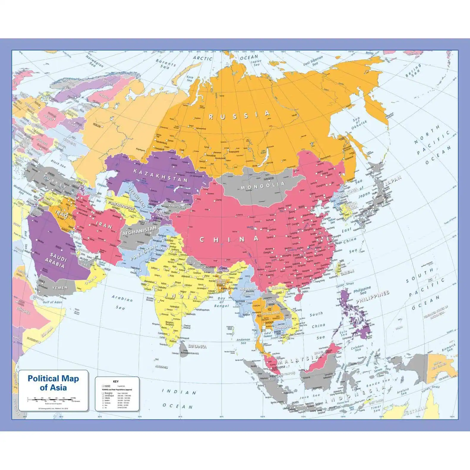 Color Blind friendly Political Wall Map of Asia by Cosmographics