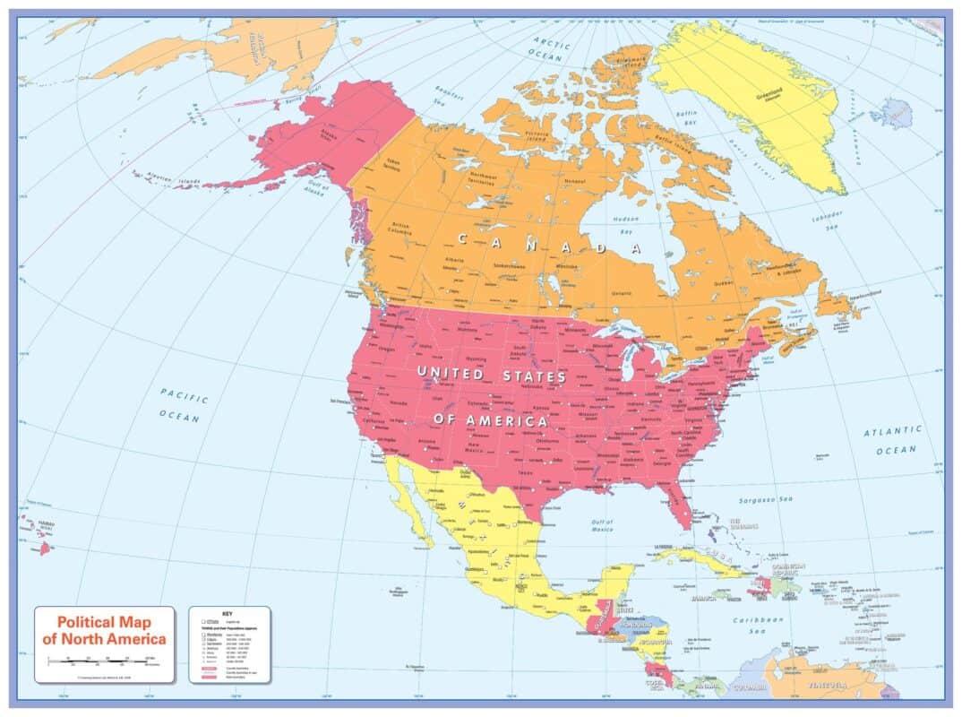 There is likely to be at least one child in every classroom that is colour blind. Designed especially to work with any form of colour blindness, this colourful, easy to read children's map of North America showing countries, states, capitals and a selection of cities and main towns is ideal for the classroom.