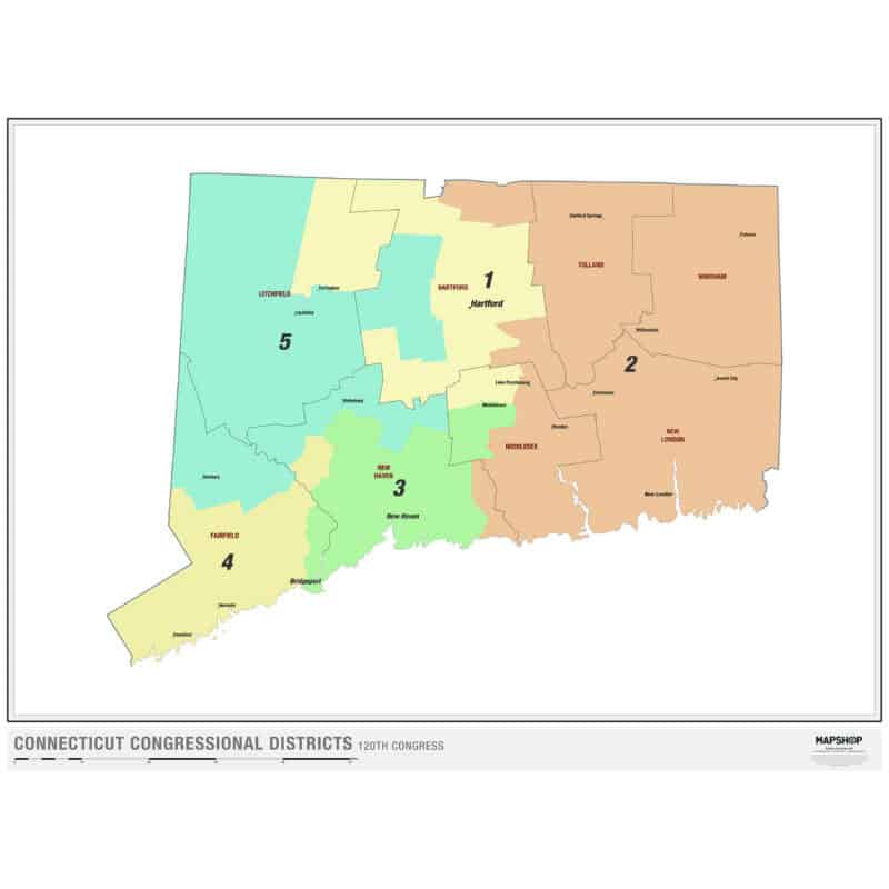 The Map Shop’s goal is simple. We want to inspire adventure, connect customers to past memories, and offer a better understanding of our country. We developed this Connecticut Congressional Districts Wall Map in-house so we’d have complete control over the cartography and design of the map. The result is a map that is as much fine art as it is a geographic reference with the most up-to-date Congressional District boundaries on the market.