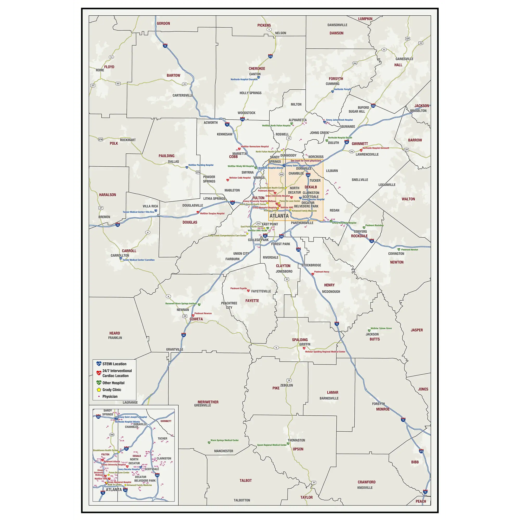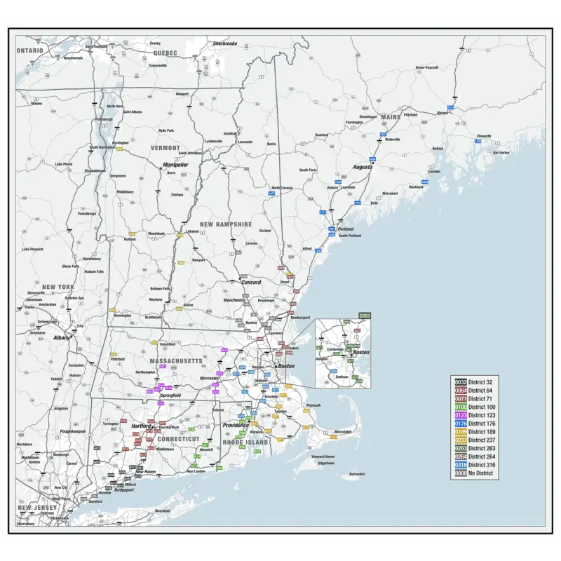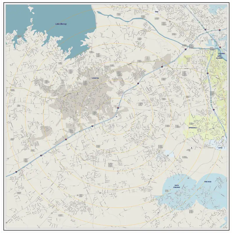 This can show a service area as one single color or multiple colors. It can also show areas like sales territories, business districts, service zones, or any other areas that are separate from each other. Common methods used to determine service areas are by counties, by zip codes or by census tracts. These types of maps can help with planning and strategy for a wide range of applications.