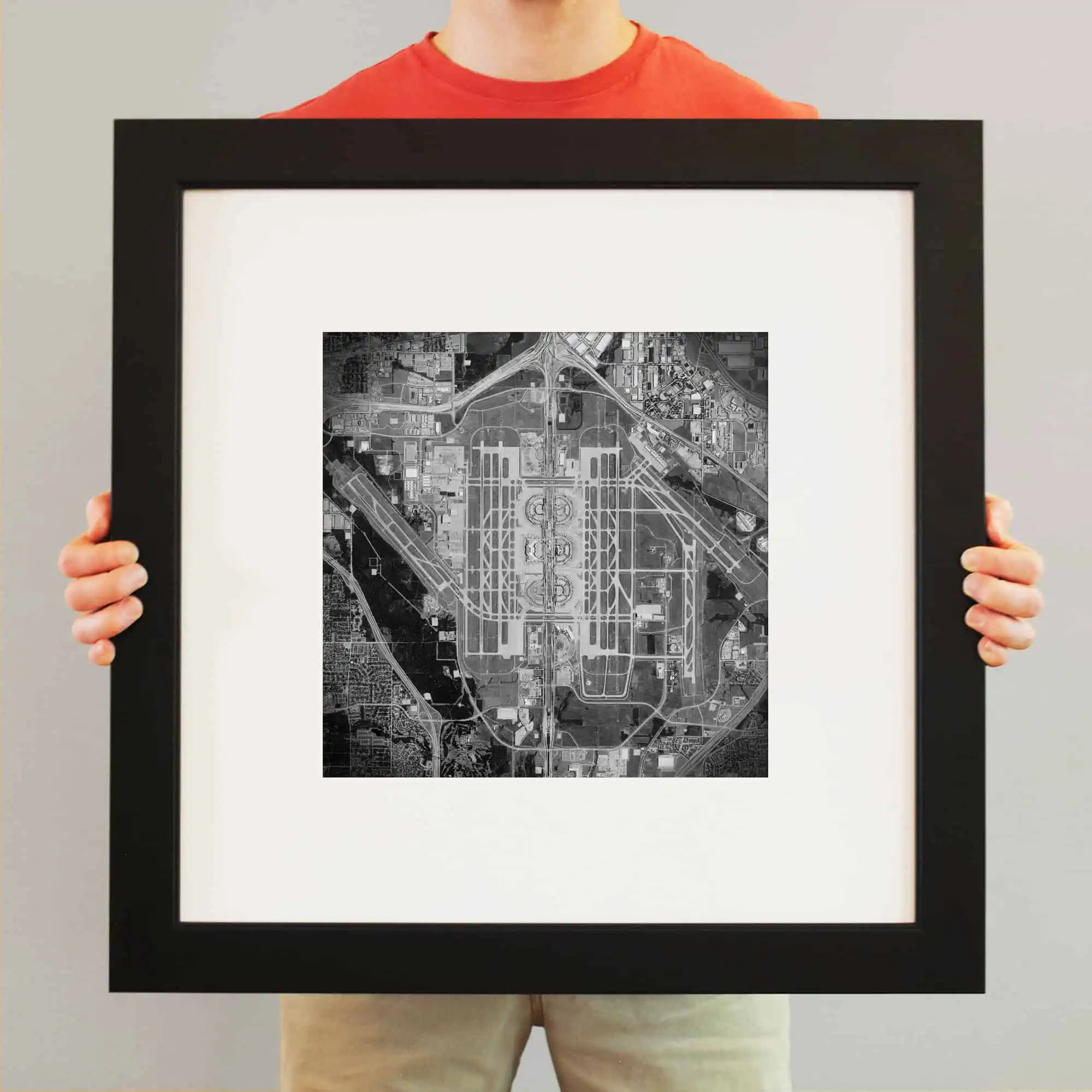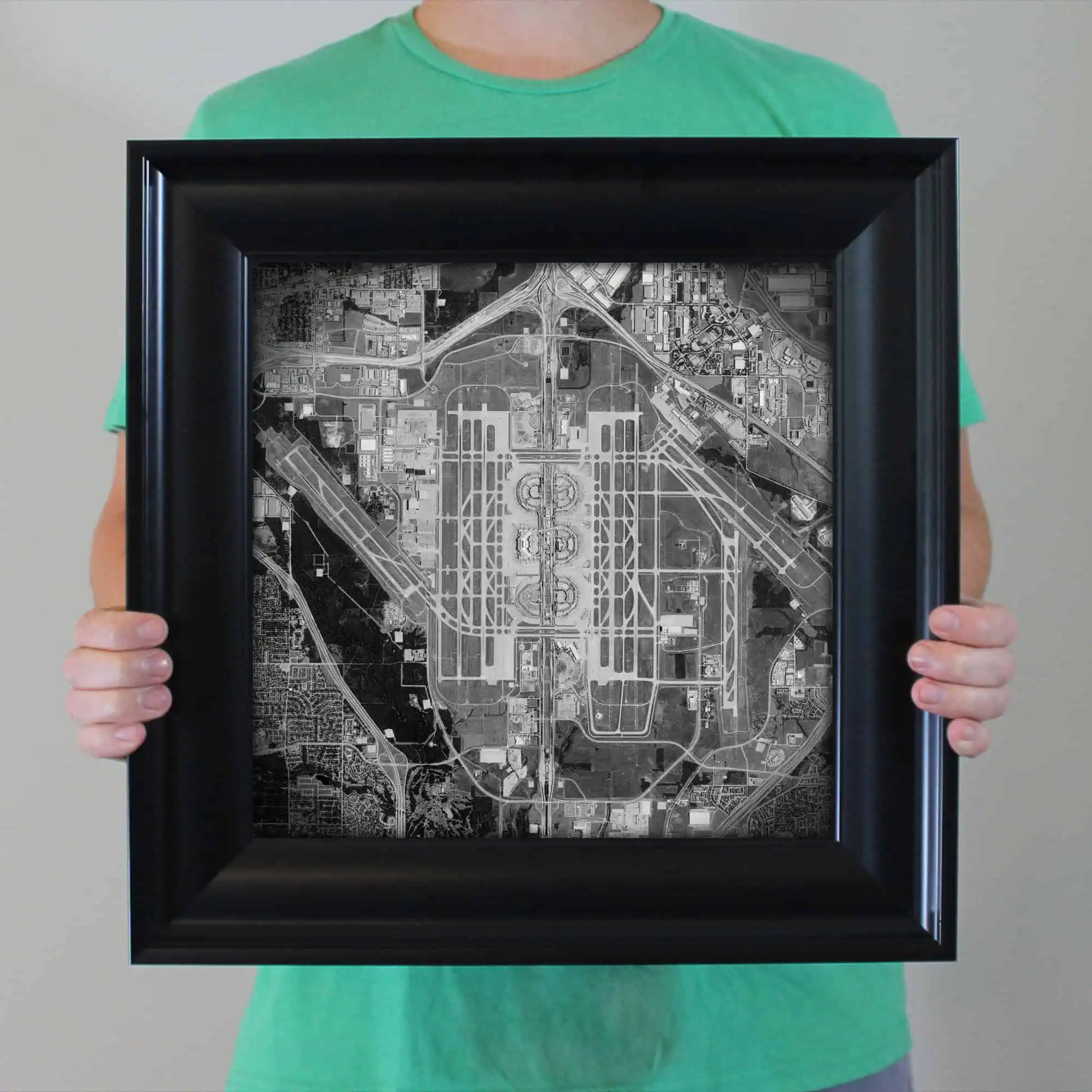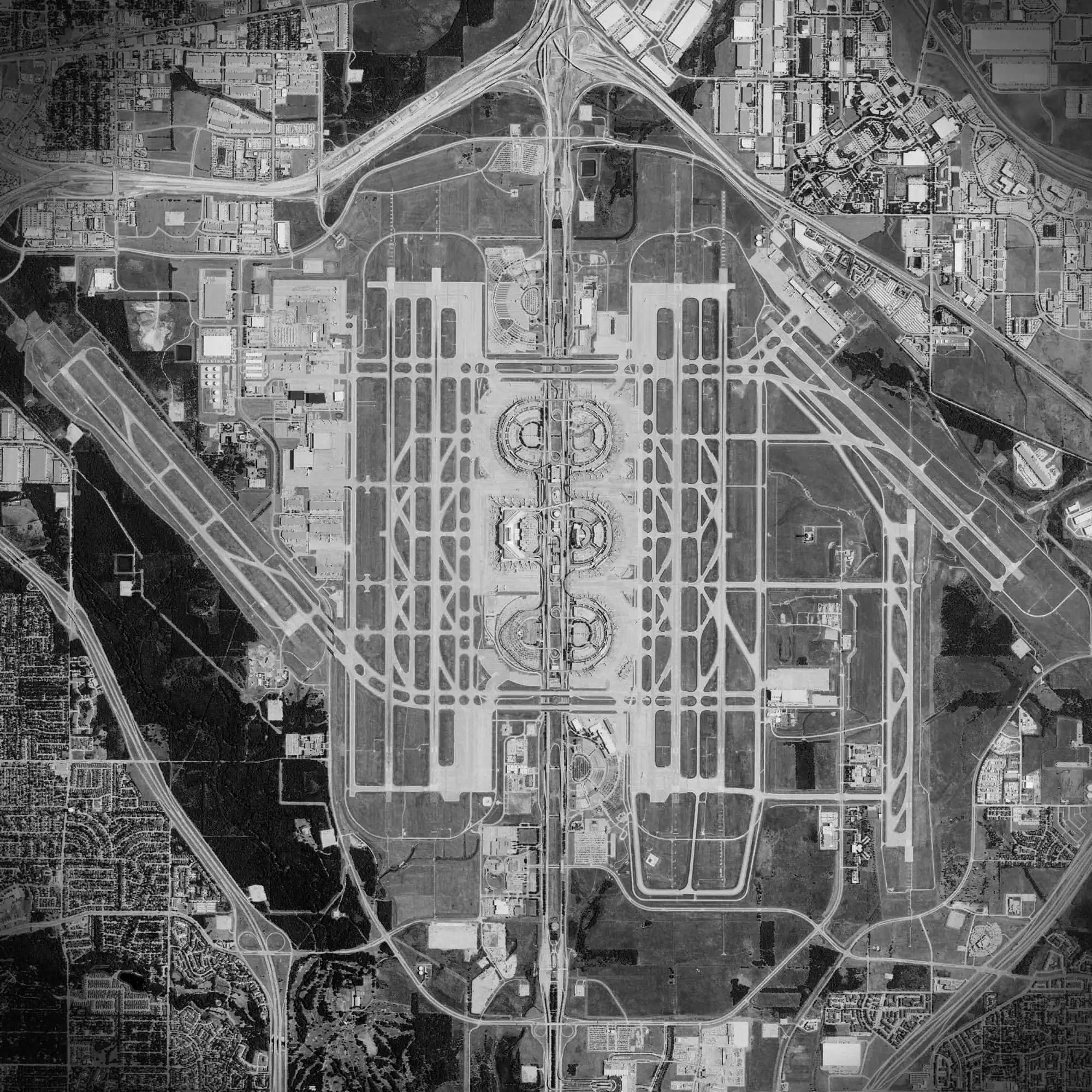 Satellite art print of Dallas/Fort Worth International Airport located in Dallas, Texas.