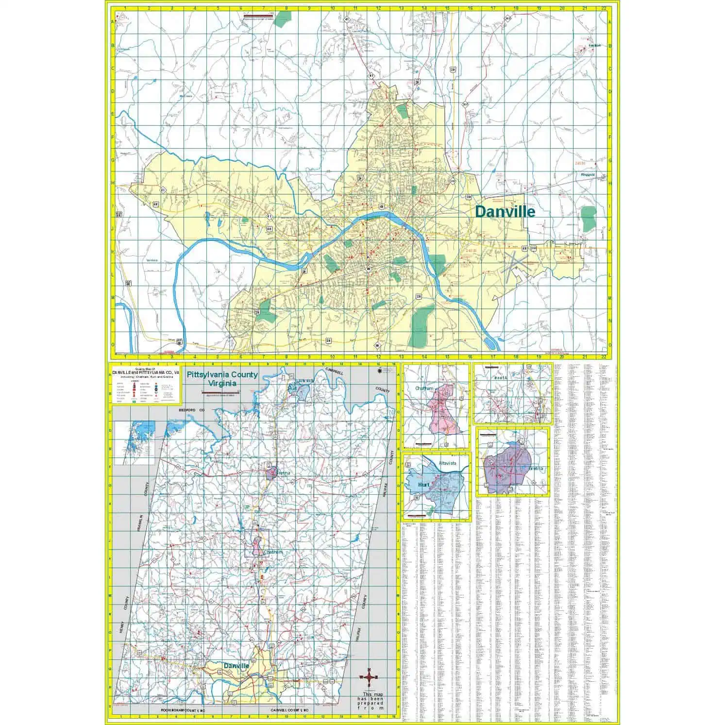 Danville and Pittsvania County, VA Wall Map – 48×64″