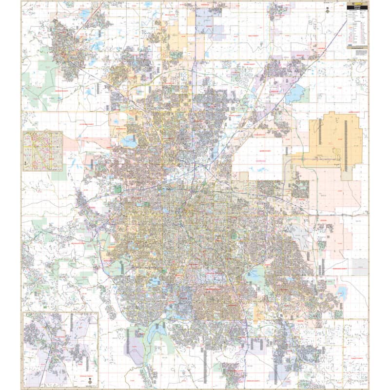 The Denver, CO Metro Wall Map, along with its adjacent areas, provides comprehensive street detail. The map covers the following geographical boundaries: