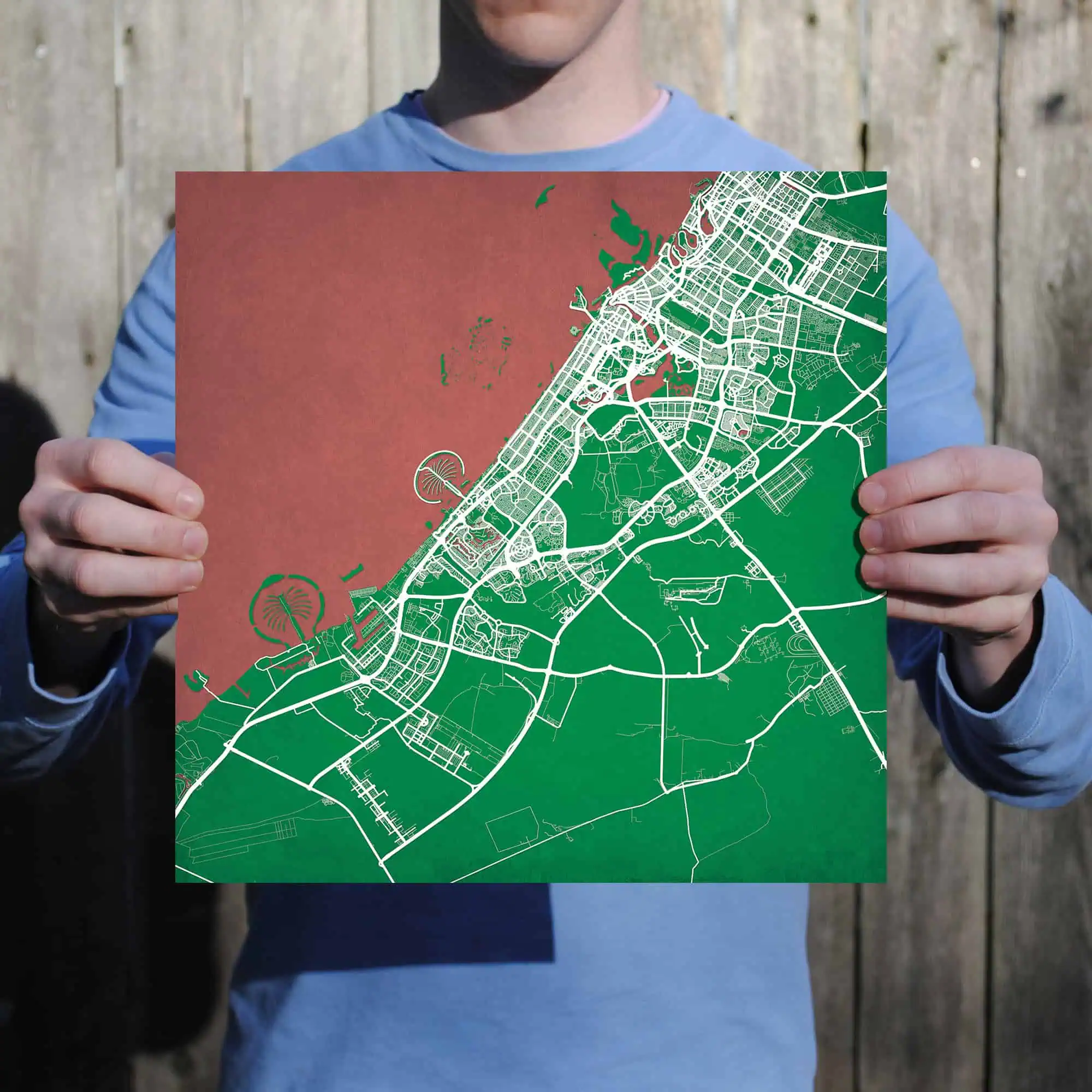 Colorful city map wall art featuring prominent street layouts and urban design, perfect for home or office decor, highlighting city navigation and geographic features.