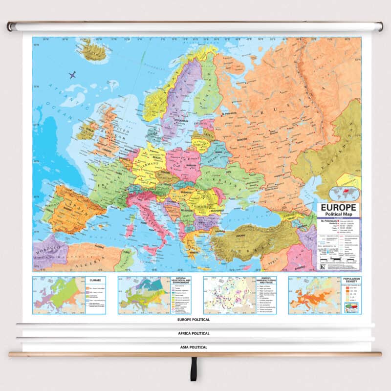 Spring rollers are the classic way large wall maps are displayed in classrooms, but the vintage style is also gaining popularity as interior design pieces at home or in the office. Pull the maps down when you need them and roll them away when you don't.