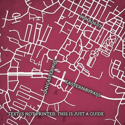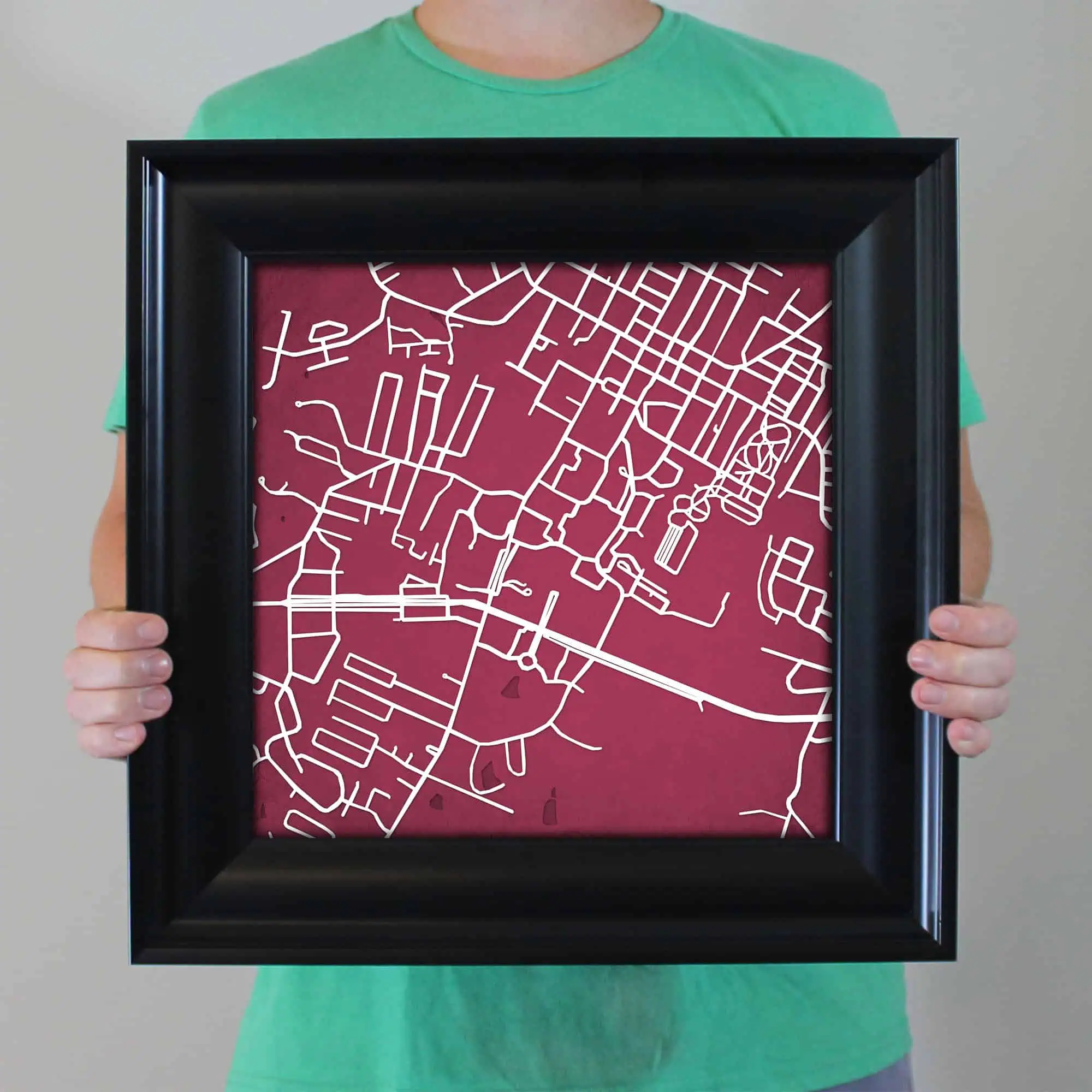 Map art print including Eastern Kentucky University campus located in Richmond, Kentucky.