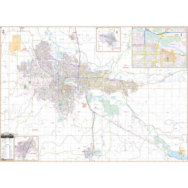 The Eugene – Springfield, Oregon Wall Map by Kappa Map Group provides complete street detail at a scale of 1″ = 2,000 feet. The area of coverage encompasses: