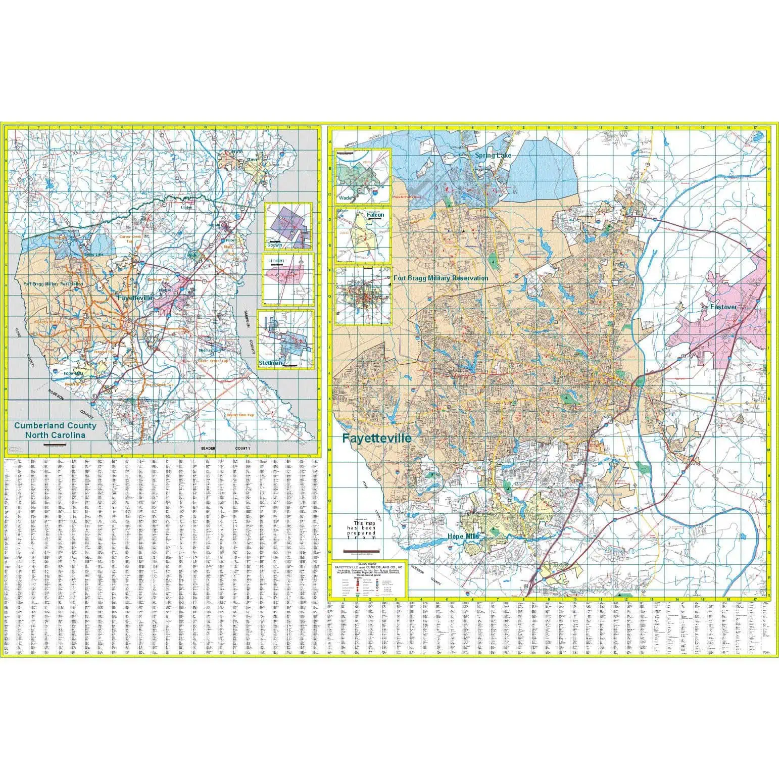 Fayetteville and Cumberland County, NC Wall Map – 66×46″