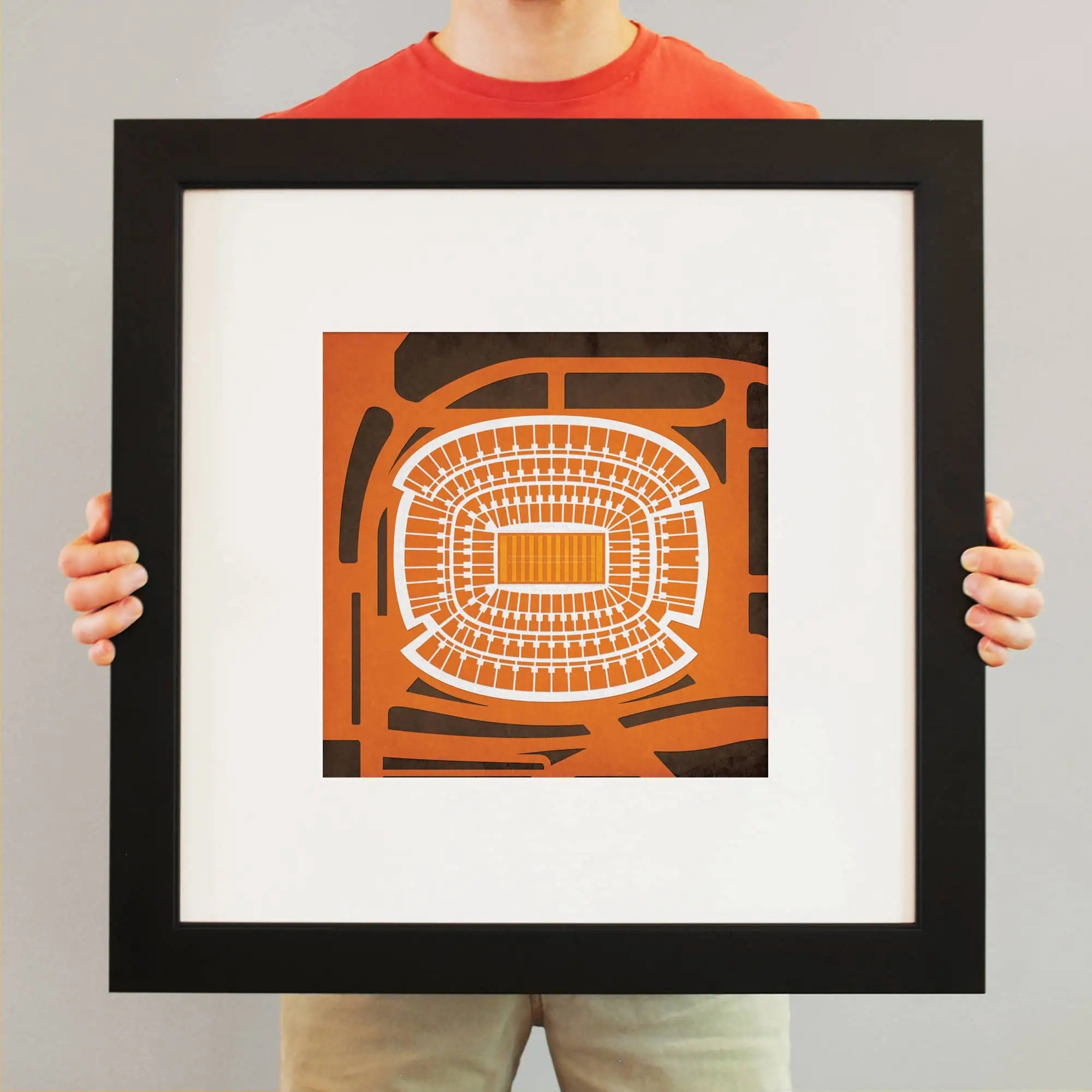 Map art print including the aerial view of FirstEnergy Stadium located in Cleveland, Ohio.