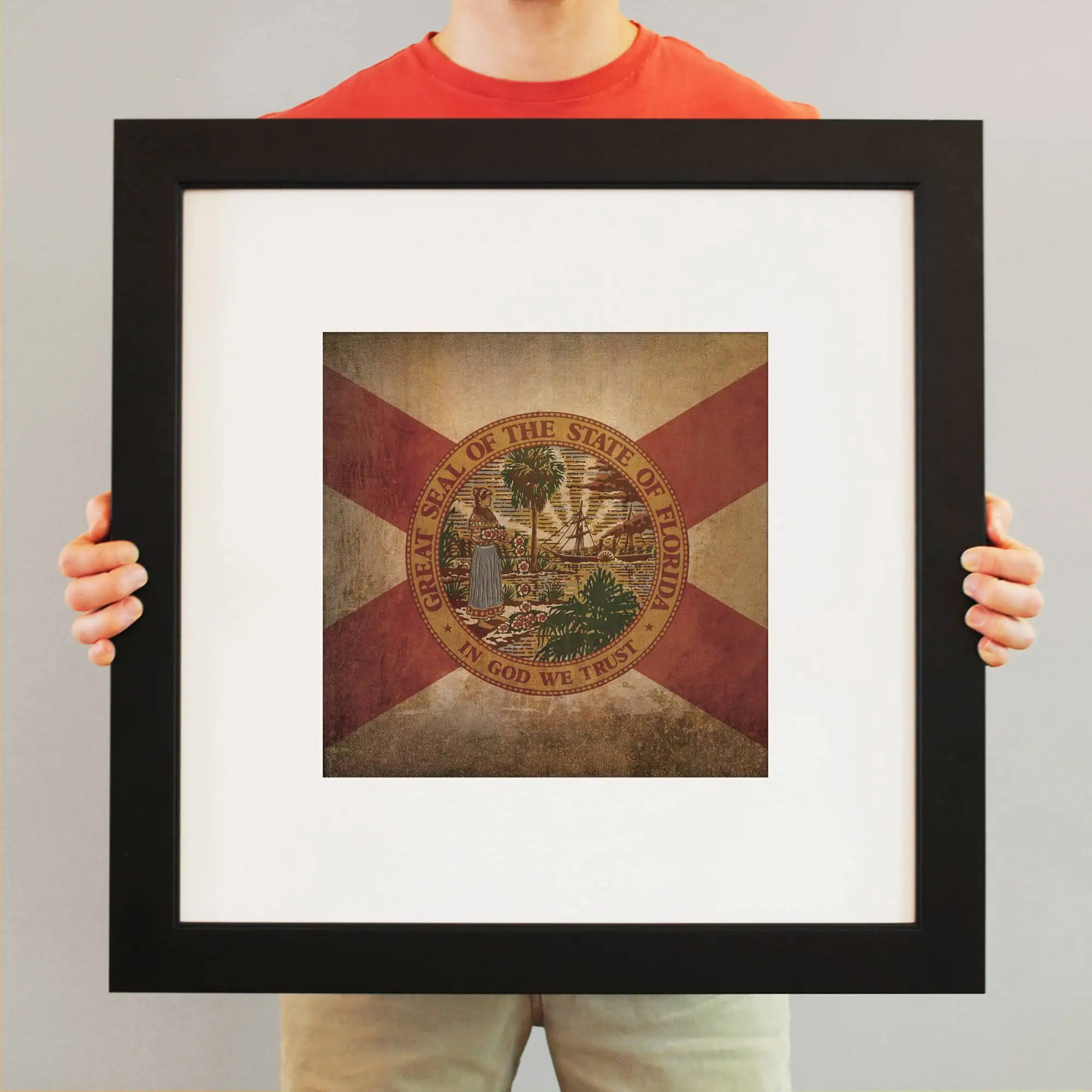 The size of this frame will vary depending on the size of the map you created. Frames are 23″ x 23″ for 12″ x 12″ prints and frames are 15.75″ x 19.75″ for 12″ x 16″ maps. Both frames have a black 1.75” wide genuine-wood molding. The print is enhanced with a soft white acid-free mat, which is bevel cut and placed on top of the print. The print and matt are protected by a premium crystal-clear acrylic overlay. The back of the frame is sealed with a dust cover for added protection. Industrial silver hanging hardware is bolted to the back of the frame so it’s ready to hang on your wall.