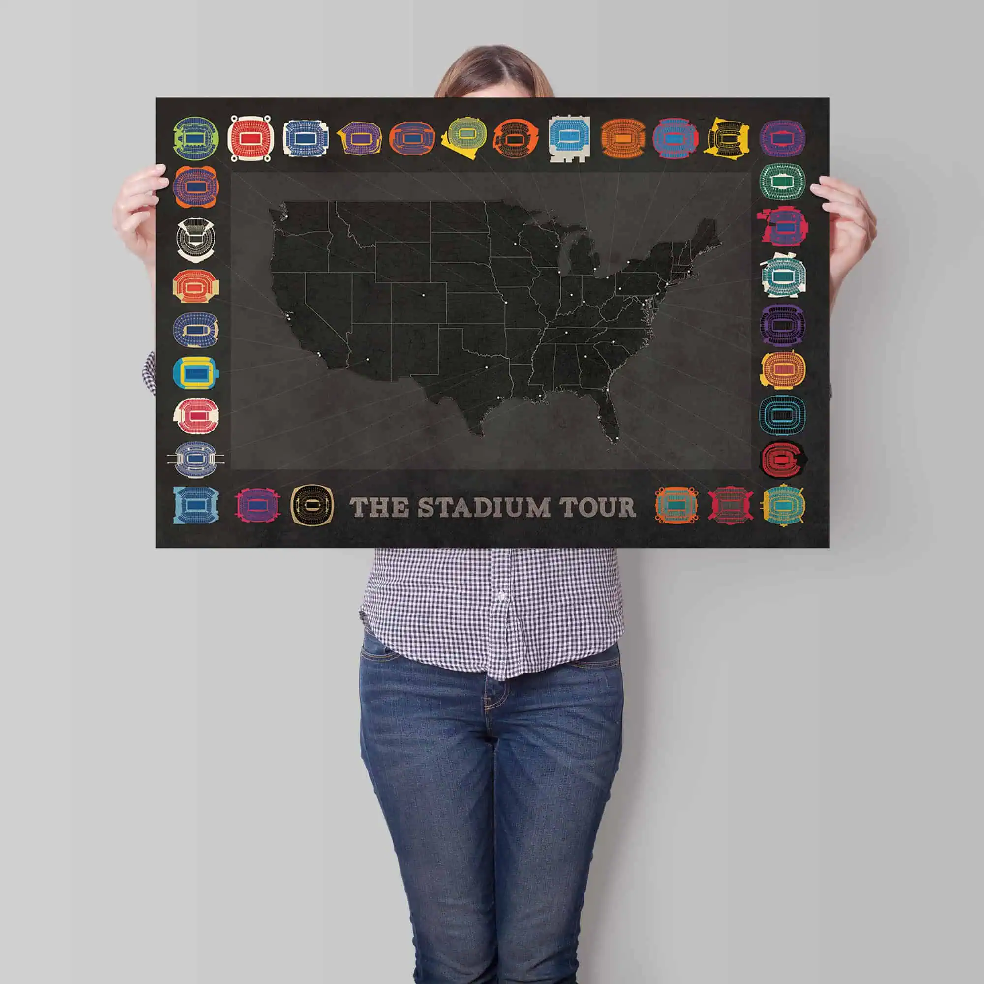 Planning to visit all the professional football stadiums in the US? Track your progress with this map! By including each layout, it shows the differences in design and structure of the league’s stadiums.