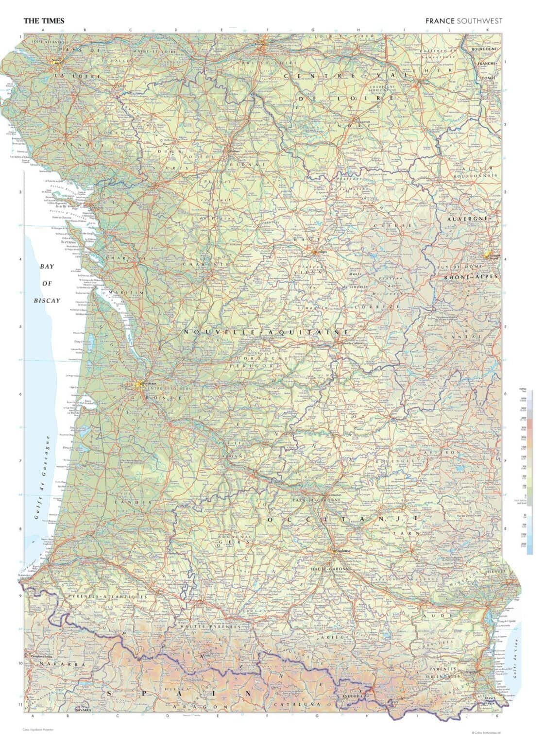 France (Southwest) Wall Map by The Times