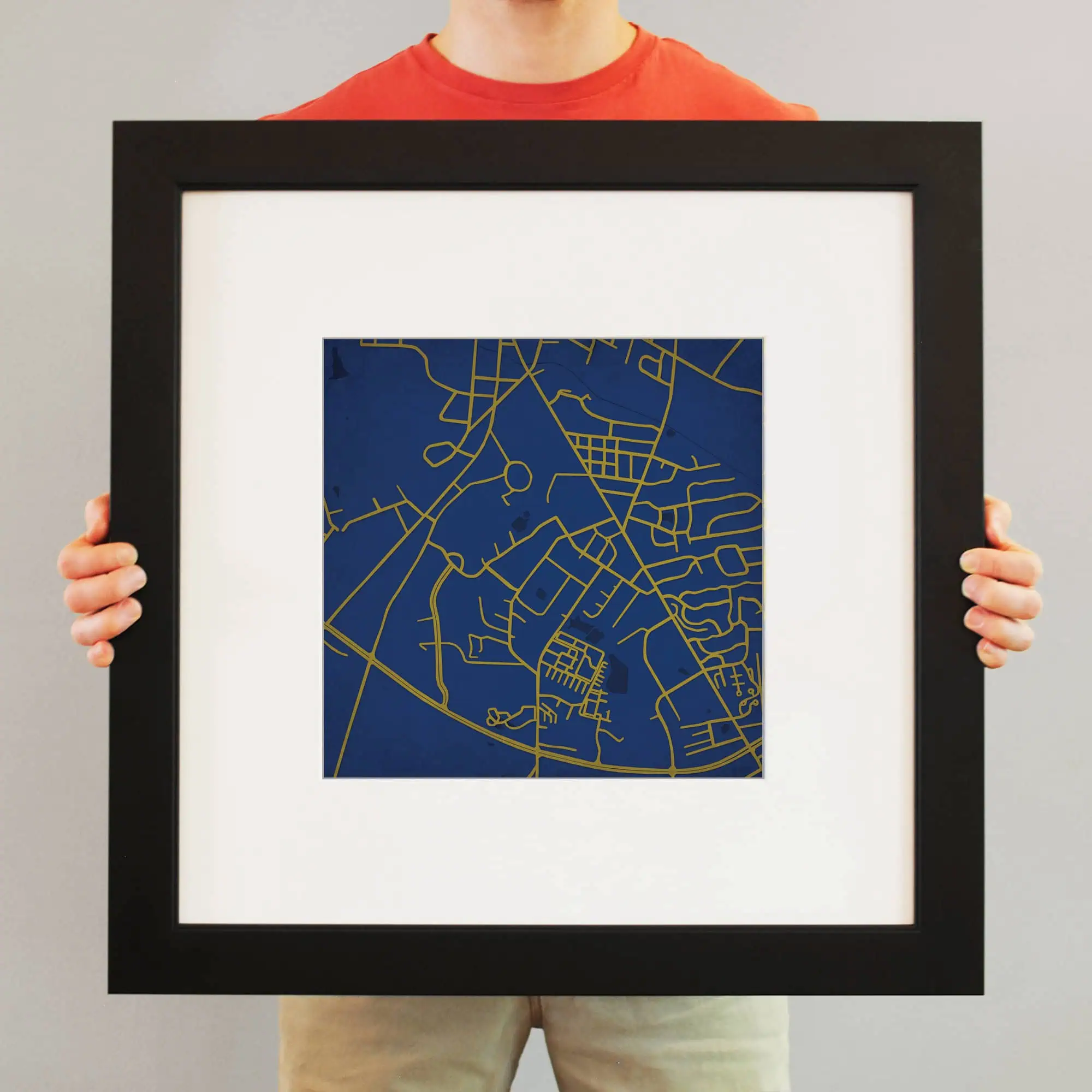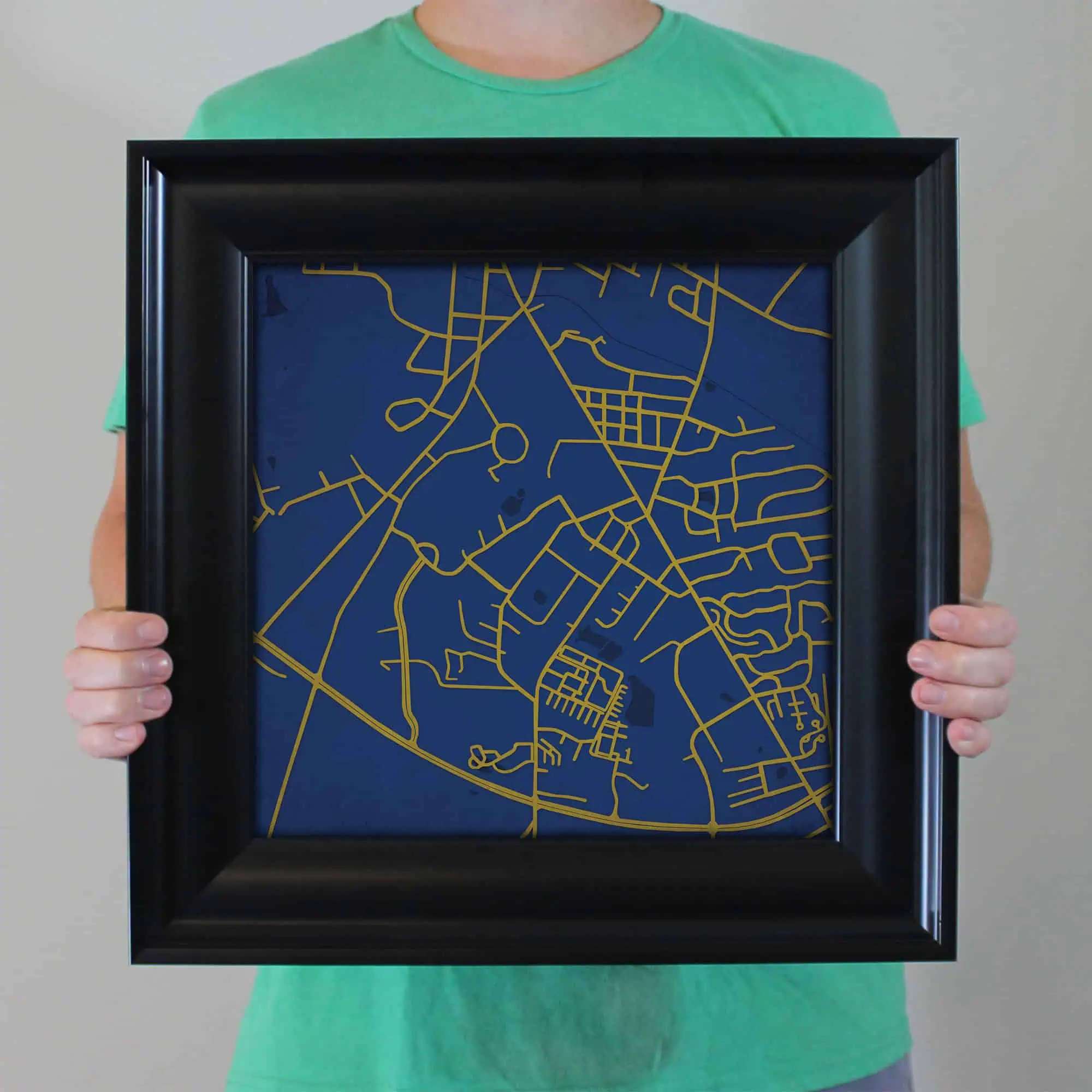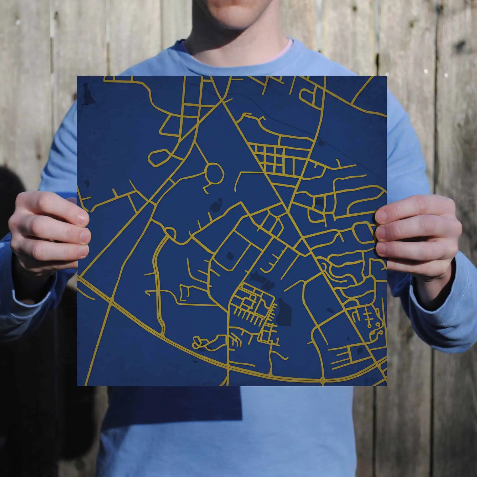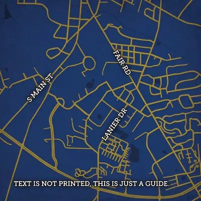 Map art print including Georgia Southern University campus located in Statesboro, Georgia.