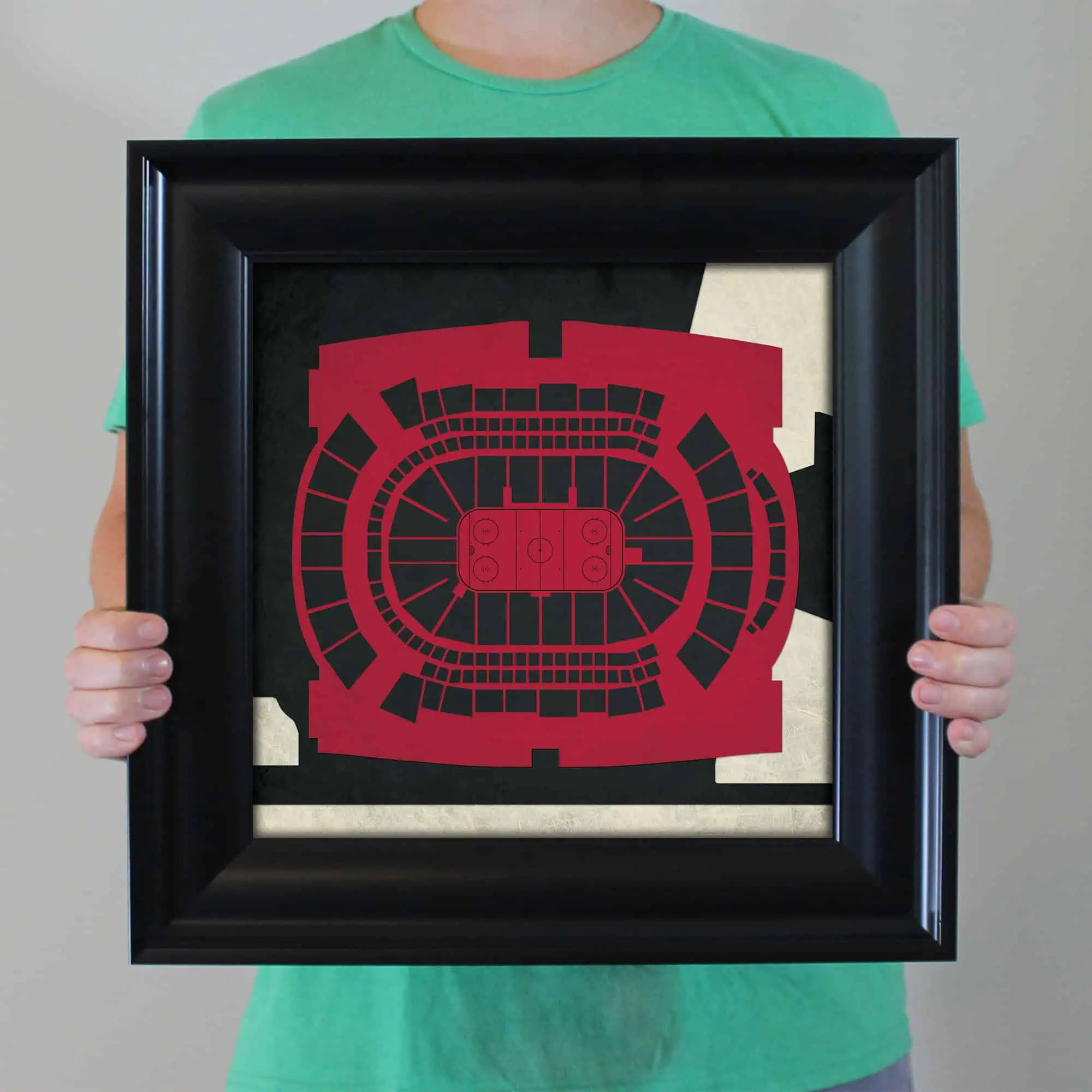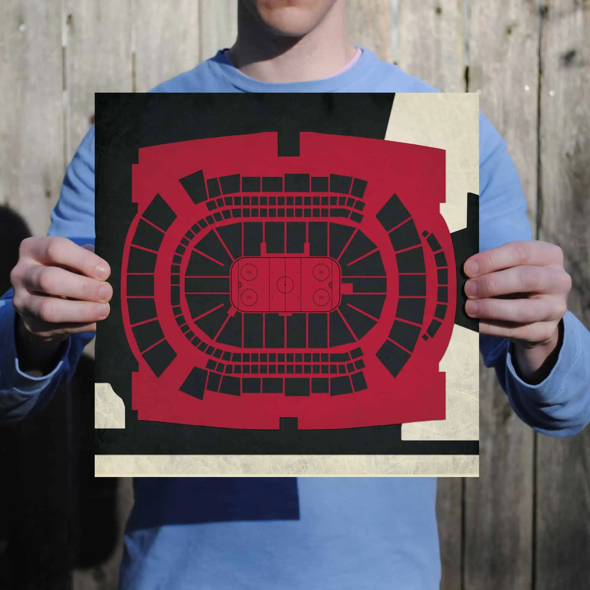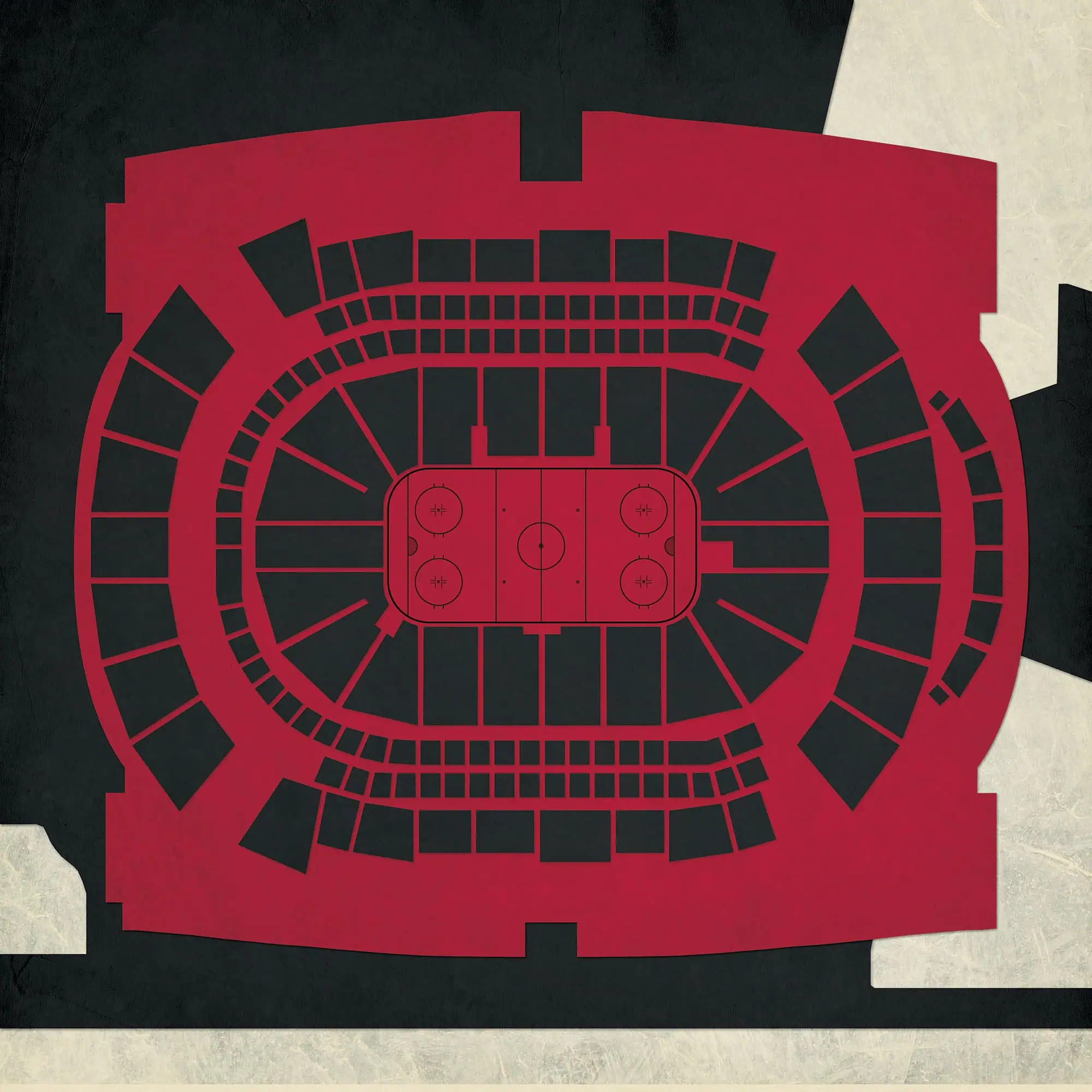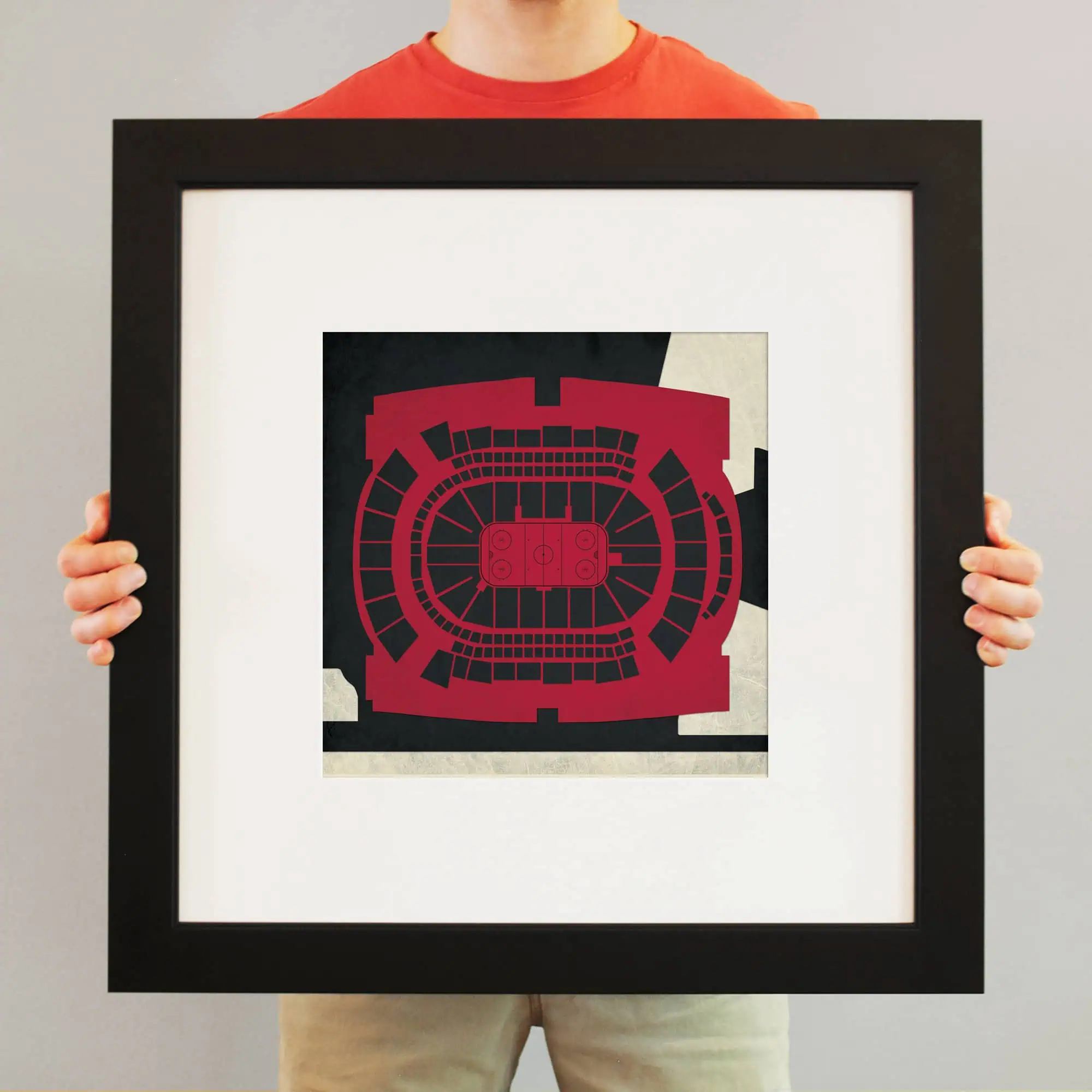 Map art print including the aerial view of Gila River Arena is located in Glendale, Arizona.
