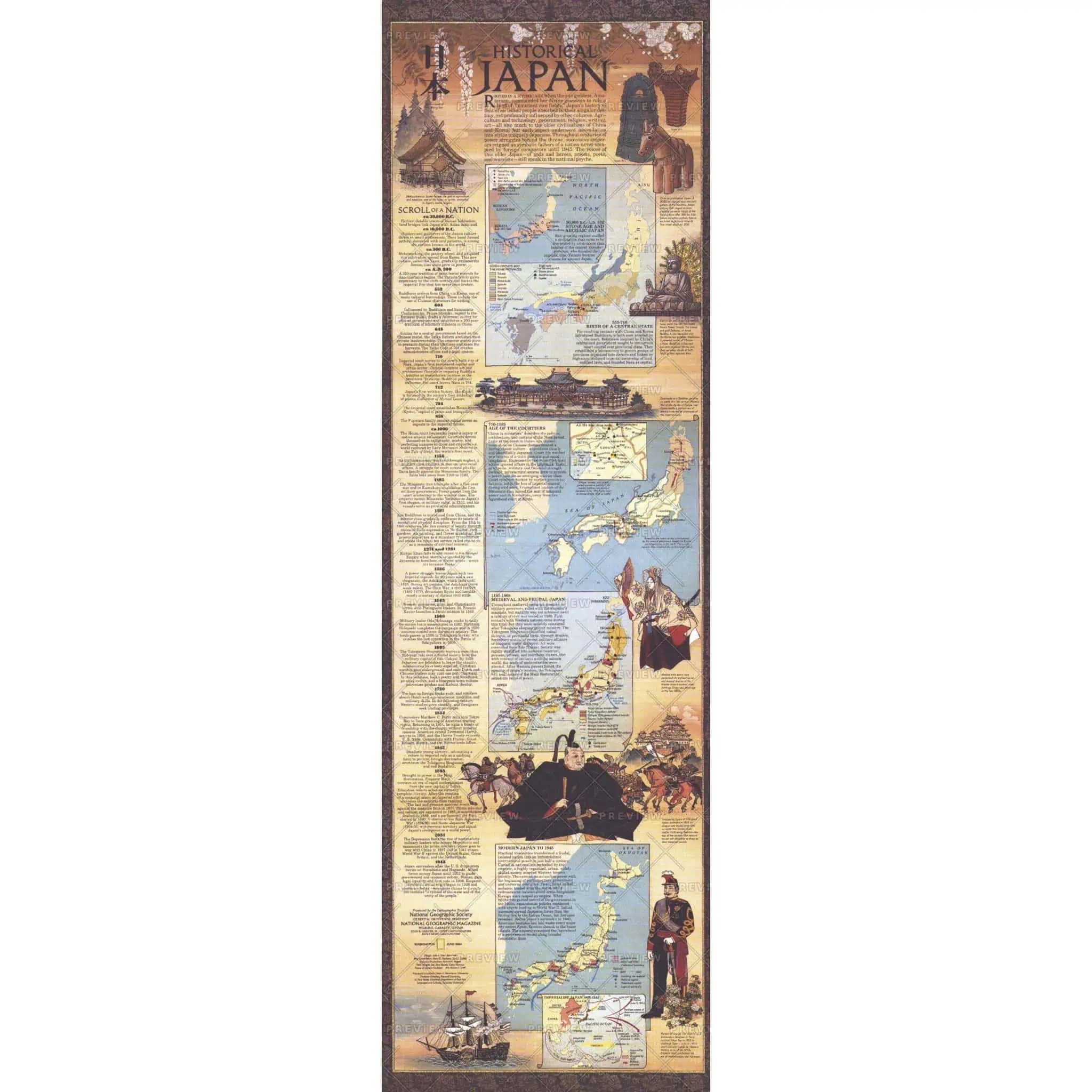 The companion to the Japan map of 1984 and the article “Hagi: Where Japan’s Revolution Began,” this stunning work contains six maps detailing periods of history from the Stone Age through modern Japan. The elegant illustrations, abundant text and historical timeline make this a must-have for anyone interested in Japanese history.Â