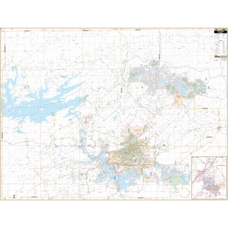 The Hot Springs & Garland Co., AR Wall Map by Kappa Map Group provides complete street detail. It encompasses Garland County, Hot Springs Village, Rockport, and Malvern within specified boundaries: