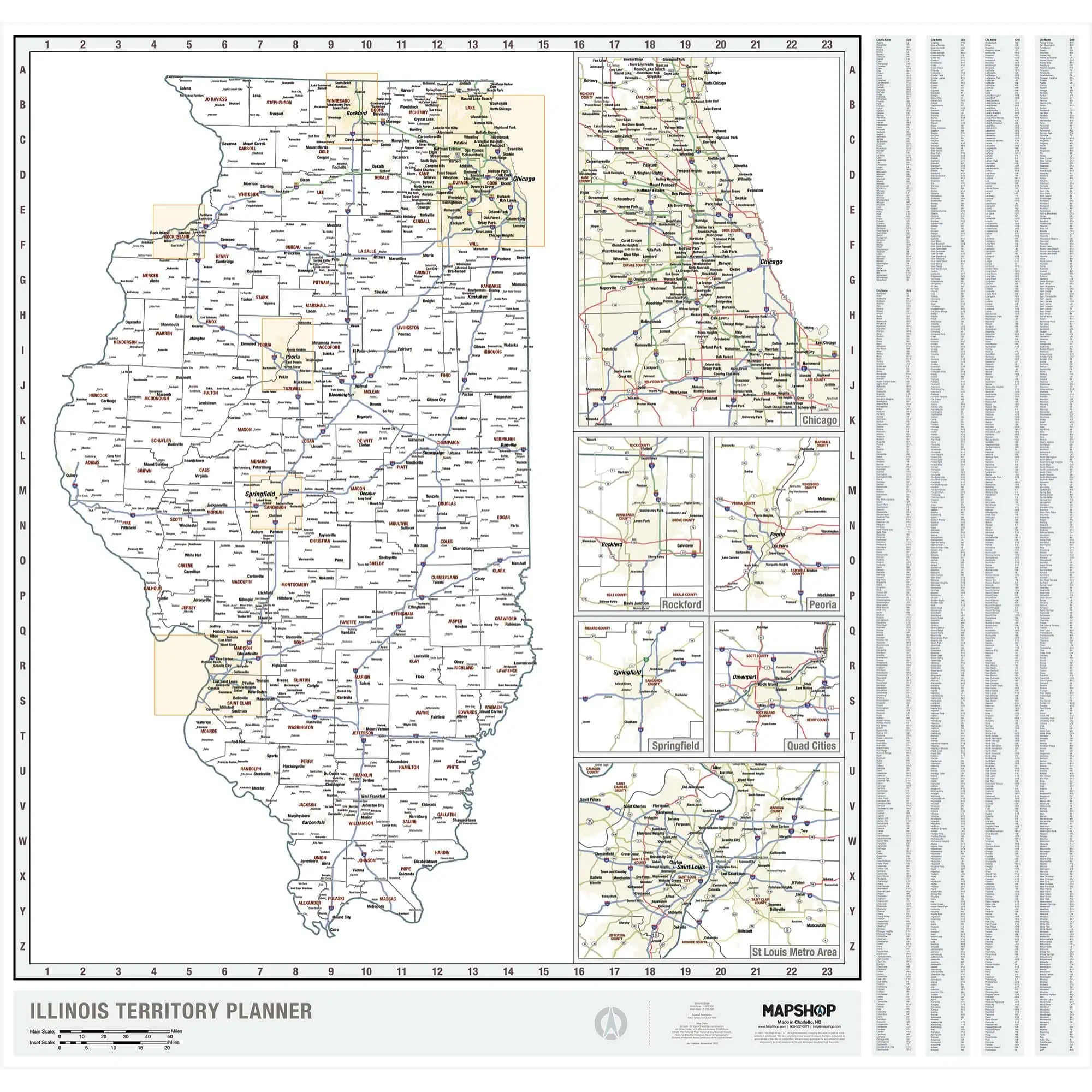 The Map Shop’s goal is simple. We want to inspire adventure, connect customers to past memories, and offer a better understanding of our country. We developed this Illinois Planning Wall Map in-house so we’d have complete control over the cartography and design of the map. The result is a map that is as much fine art as it is a geographic reference. While simpler than the Illinois Wall Map itself, this map is not lacking in any way: