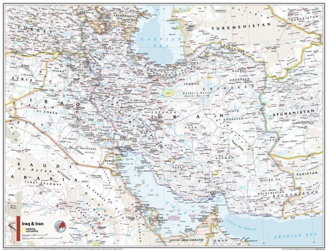 This Iraq and Iran map of physical and political features can fit in any space. Showcasing the region in stunning detail with state-of-the-art cartographic techniques delivering accuracy and exceptional quality, the innovative and engaging design makes the content easily accessible and user-friendly.