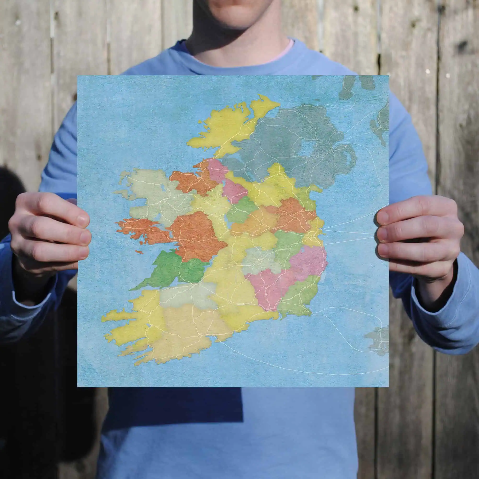 Map art print of Ireland.
