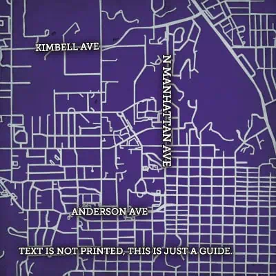 Map art print including Kansas State University campus located in Manhattan, Kansas.