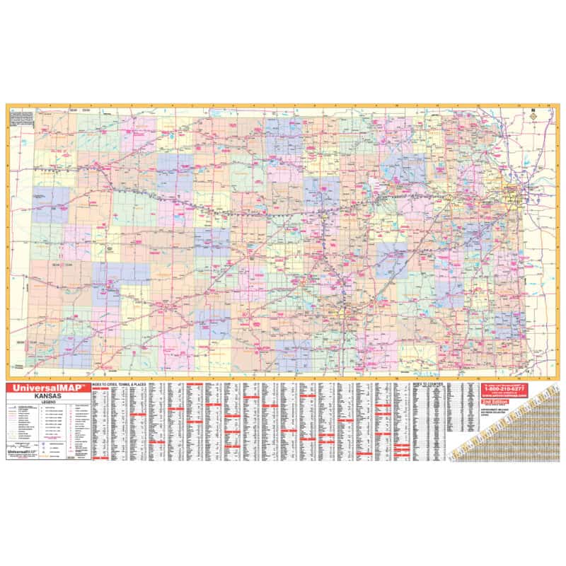 The Kansas State Wall Map by Kappa Map Group is a comprehensive cartographic tool, providing an in-depth view of the state. This map includes cities and counties indexed on its face for easy navigation. It features color-coded counties and a handy mileage chart to calculate distances between major cities. Detailing all state and federal highways, major waterways, state universities, military installations, major airports, state parks, and wildlife areas, it covers a wide range of geographical and infrastructural elements. Additionally, the map presents cities, towns, and various points of interest across Kansas, making it a valuable resource for residents, professionals, and visitors seeking detailed geographic information.