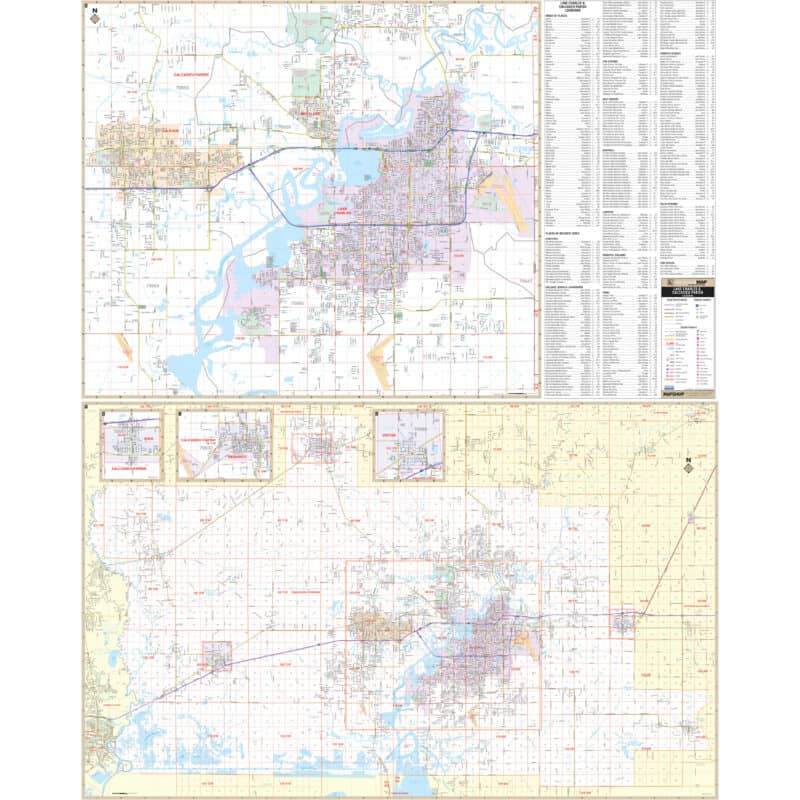 The Lake Charles and Calcasieu Parish, Louisiana Wall Map by Kappa Map Group offers comprehensive street details, catering to various geographical areas: