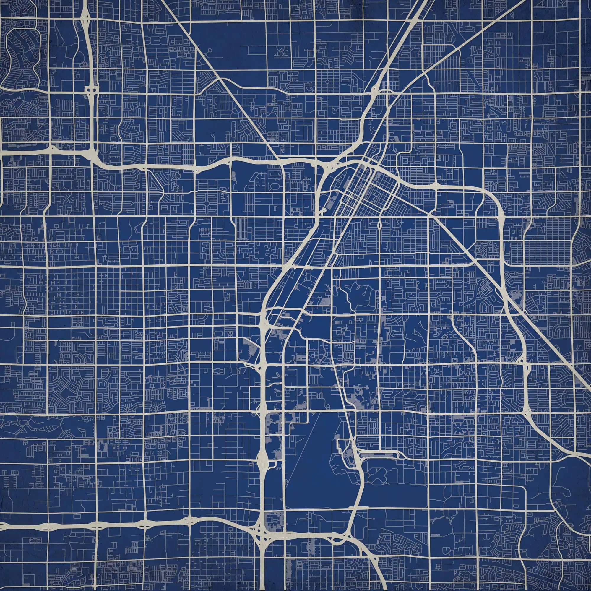 Colorful city map wall art featuring prominent street layouts and urban design, perfect for home or office decor, highlighting city navigation and geographic features.